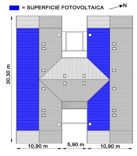 Al momento della realizzazione, nel secondo semestre 2012, l’incentivo previsto per gli impianti fotovoltaici innovativi era pari a 0,41 €/kWh (+70% rispetto impianti standard). La superficie non interessata dal fotovoltaico, 541 m2, è stata eseguita con la stessa tipologia di tegole in laterizio, MaXiMa Rosse, ancorate e ventilate ma prive del modulo fotovoltaico.