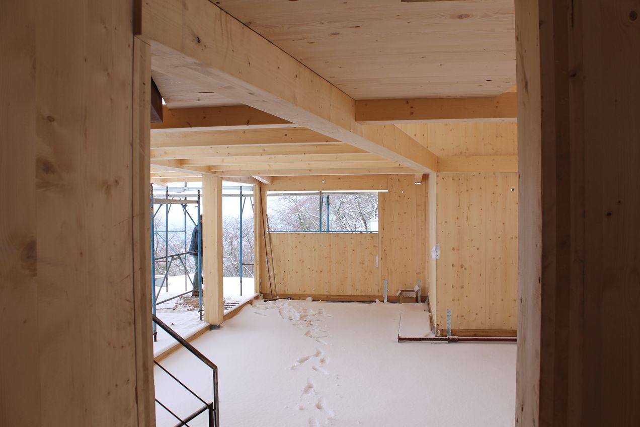 I muri in elevazione sono stati costruiti con pannelli strutturali in X-Lam in modo da ridurre sensibilmente i tempi di costruzione.