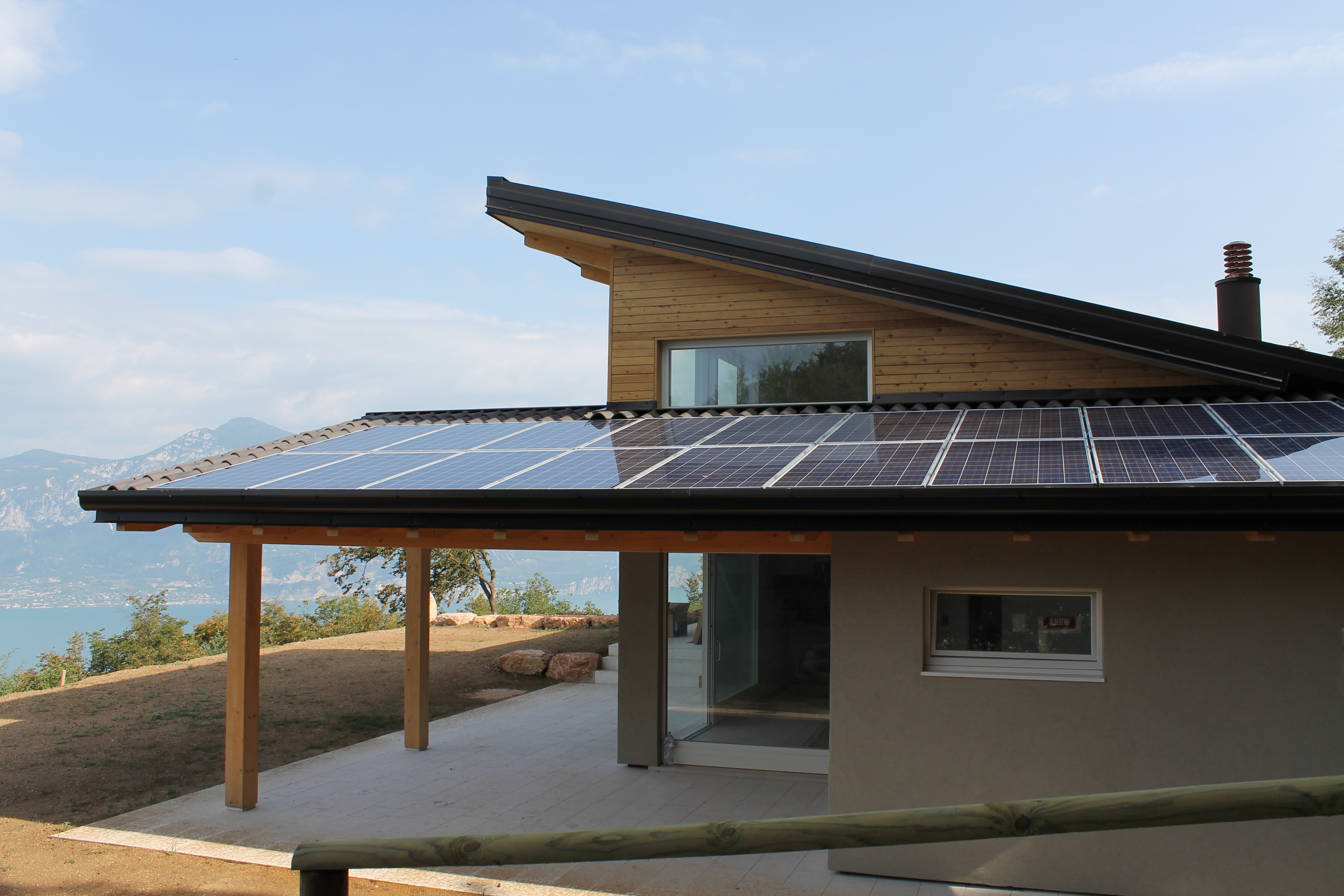 Gli impianti sono caratteristici per questa tipologia di costruzione, dove la combinazione edificio più impianto porta l’abitazione a raggiungere la classe energetica A. Con una quota sostenibile costituita da pannelli fotovoltaici e solari integrati, che saturano abbondantemente la quota di legge, una centrale termica di nuova generazione a pellets, affiancata a scambiatori termici ad alto rendimento, completa il quadro energetico a basso consumo.