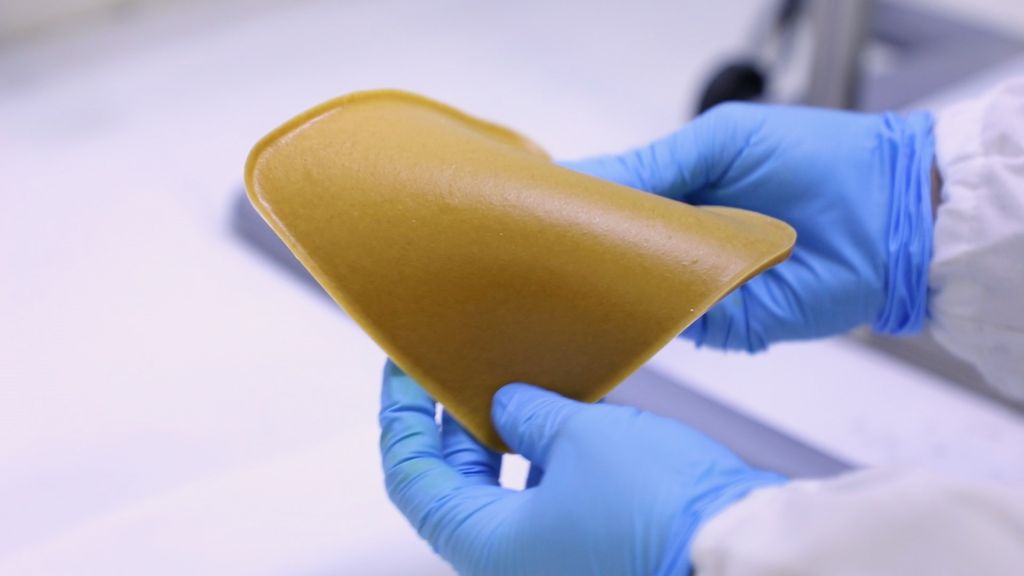 Dopo la lavorazione, si ottiene una plastica flessibile, leggera, resistente agli urti, all’acqua e al fuoco, poiché i funghi sono composti da chitina, con cui ad esempio, le cantine – usando come terreno di coltivazione gli scarti di uva – possono auto-prodursi gli imballaggi in cui contenere e trasportare le bottiglie di vino.