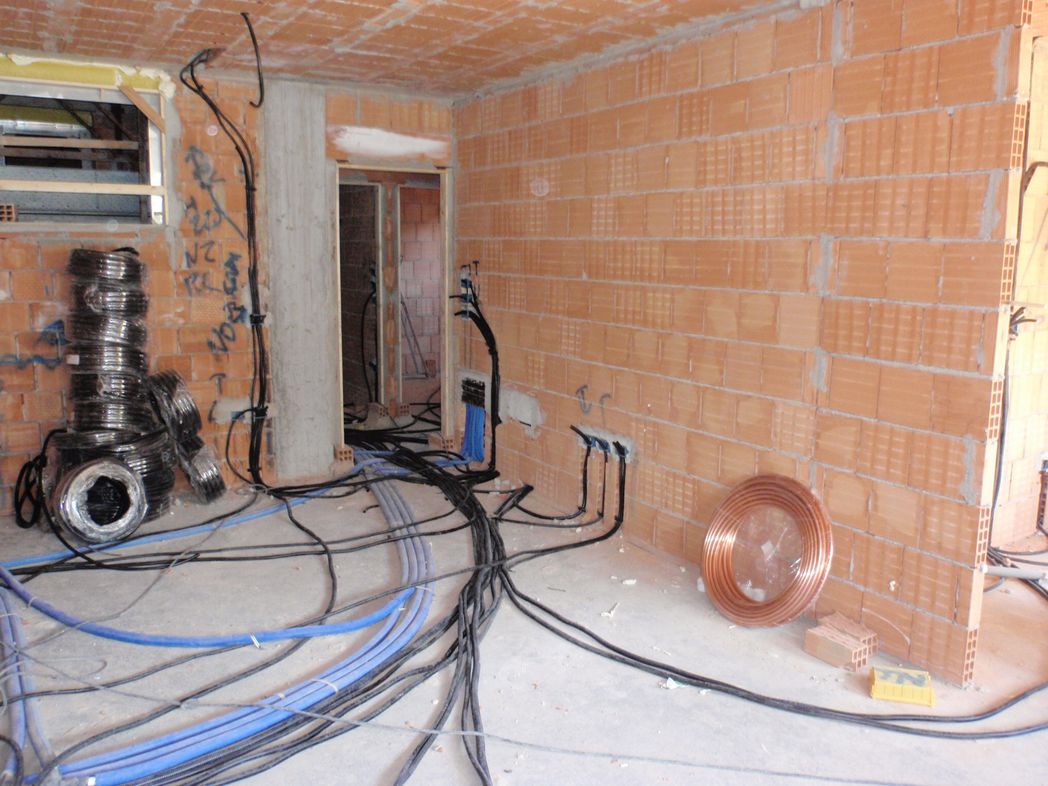 Impianto elettrico. Per ciascun alloggio sono stati realizzati impianti indipendenti completi dei dispositivi di illuminazione di sicurezza. Si tratta di impianti di tipo promiscuo che fanno capo ciascuno a un proprio quadro generale di protezione e sezionamento. I contatori generali per l’energia elettrica, acqua e gas sono stati posti in un apposito locale con l’azienda erogatrice dei servizi, al piano interato. Per le parti comuni è stato realizzato un circuito indipendente.
