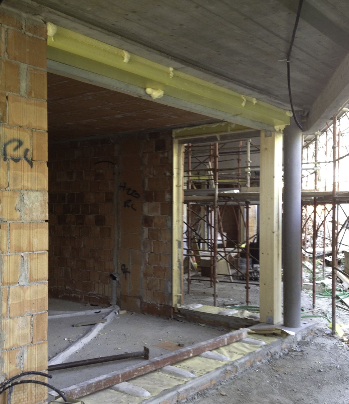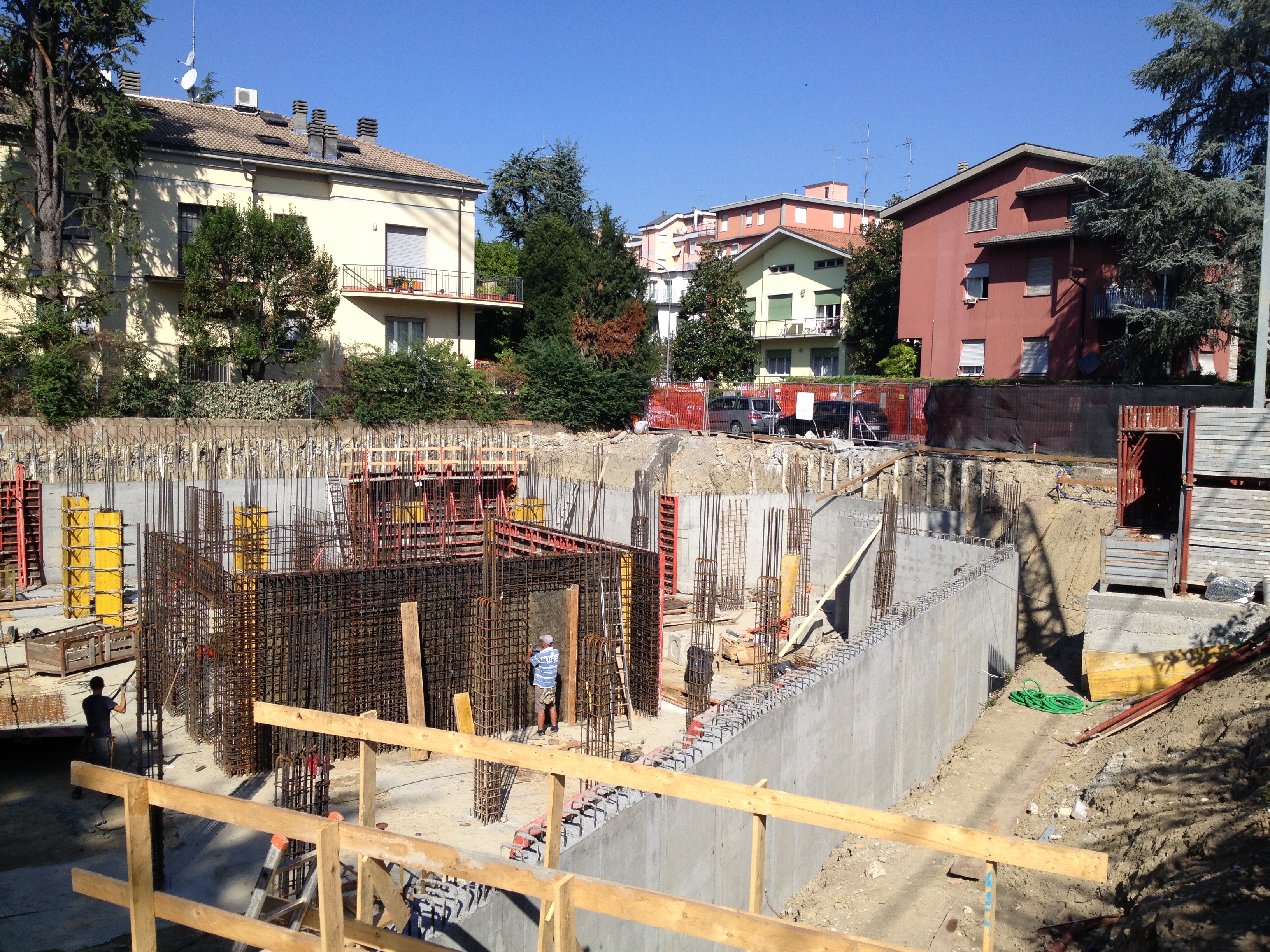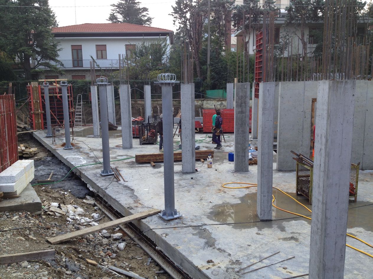 Travi e pilastri. La struttura portante è stata realizzata con telai strutturali. Pilastri e travi sono in calcestruzzo armato, classe di resistenza C 28/35, armato con ferro B 450 C. I setti murari, le solette di balconi, logge e scale sono stati anch’essi gettati in opera in calcestruzzo, classe di resistenza C 28/35, armato con ferro B 450. Le solette in cemento armato sono state coibentate termicamente con l’applicazione di un materiale isolante “cappotto” all’intradosso e isolate sotto pavimentazione.