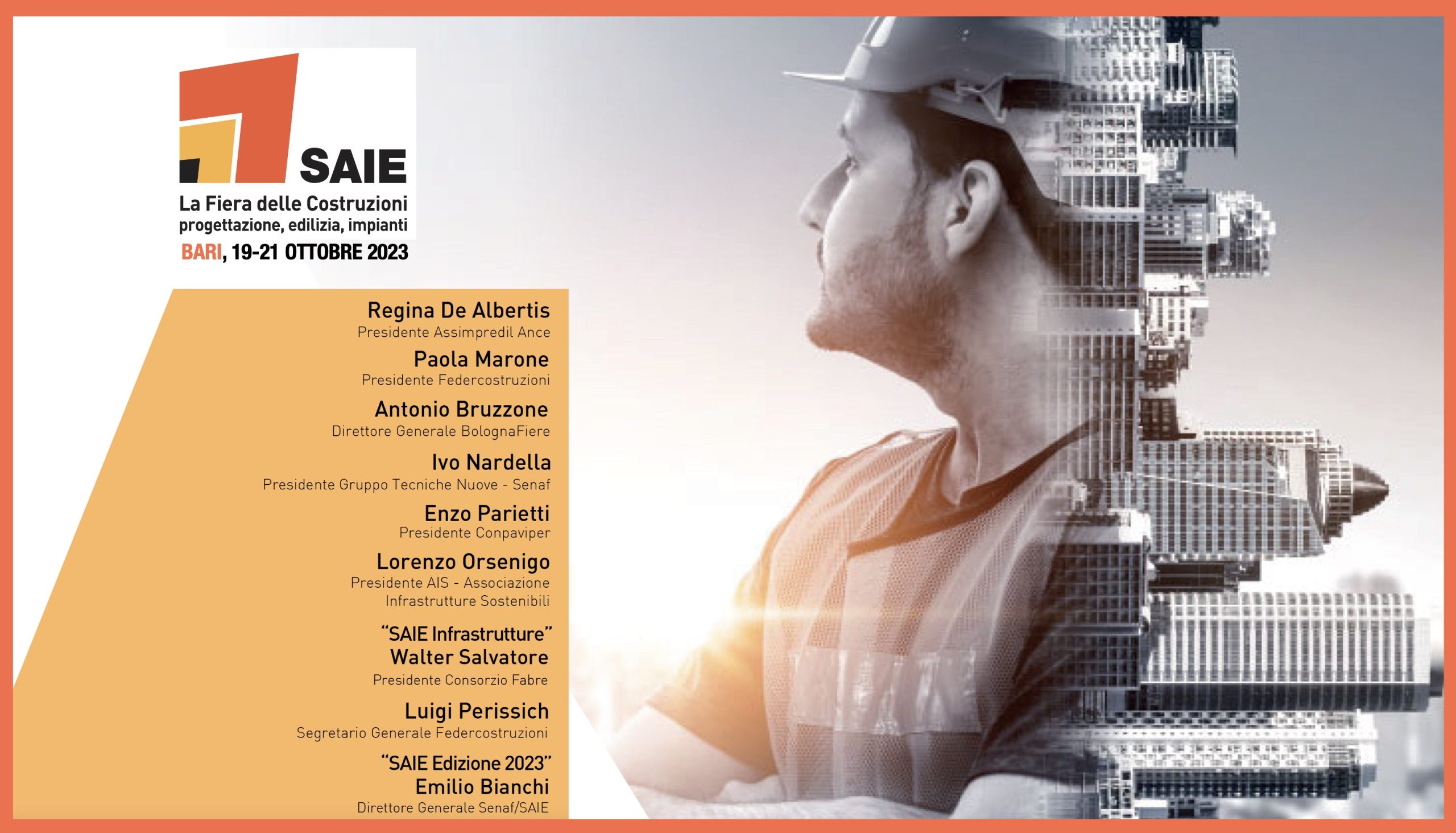 «Siamo felici di collaborare con Senaf per Saie, che ad anni alterni si svolge nel nostro quartiere fieristico a Bologna e questo anno nei padiglioni della Nuova Fiera del Levante di Bari, di cui siamo partner industriali: questa alternanza consente alla manifestazione una copertura completa del territorio, vicina a tutte le realtà del settore delle costruzioni. Saie è un evento di grande importanza per le imprese e gli operatori del settore delle costruzioni, un’occasione unica per confrontarsi, conoscere, tracciare piani di sviluppo, sui temi più importanti: sostenibilità, innovazione e digitalizzazione» ANTONIO BRUZZONE, Direttore Generale di BolognaFiere