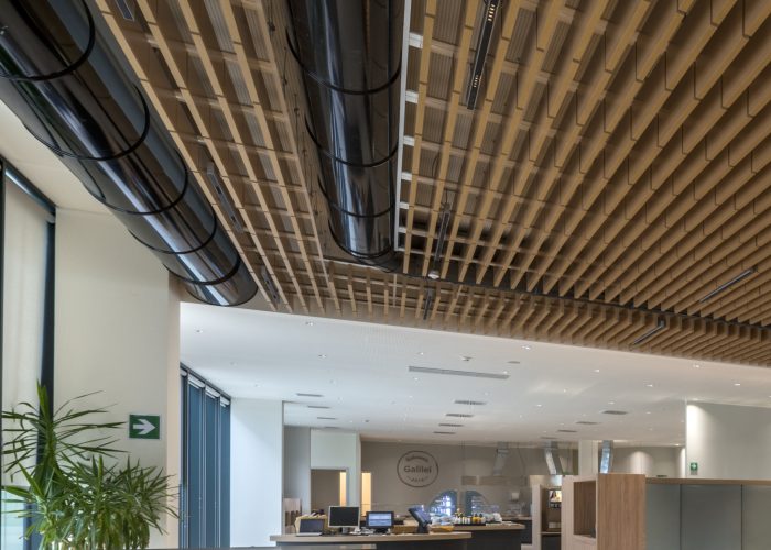 Per le superfici a pavimento della corte interna è stata selezionata infine la collezione Silvis nella tonalità Robur, il gres porcellanato spessorato 14 mm che conserva tutto il sapore del legno, del quale mantiene le lievi differenze di riflesso dovute a minime variazioni di profondità tra le fibre della materia.