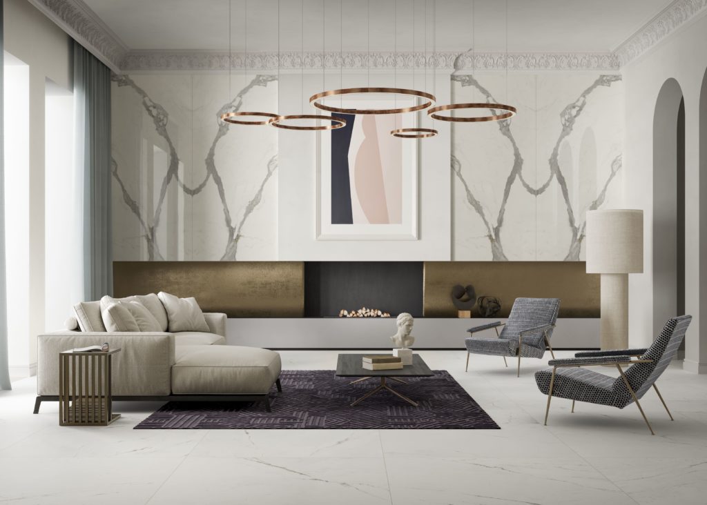 Bianco Statuario riprende le caratteristiche della pietra tipica delle Alpi Apuane, con il suo bianco calcareo e cristallino decorato da venature di grigi. Il disegno si fa sottile, quasi accennato, come nelle qualità più pregiate della pietra originale. Completa questa variante, il decoro bookmatch, per un effetto ancora più prezioso e decorativo. Tipicamente ottenuto, nel marmo, tagliando la stessa pietra in due lastre speculari, il bookmatch viene riproposto da Cotto d’Este con un’estrema precisione grafica che restituisce una combinazione particolarmente ricercata.