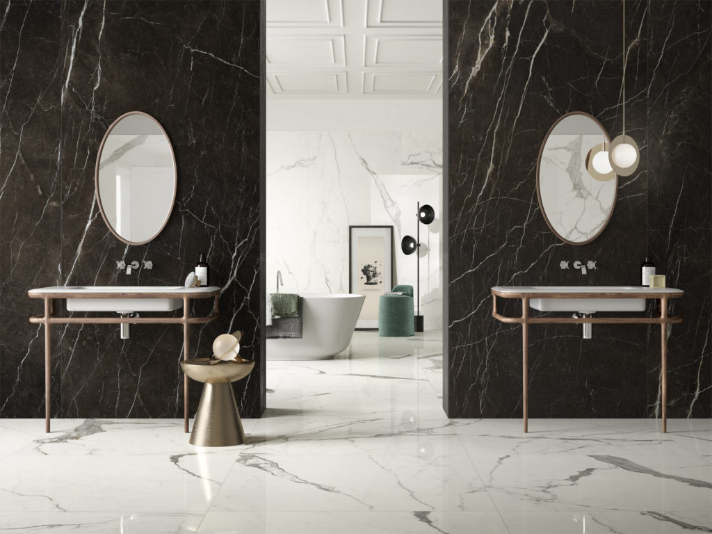 Vanity è disponibile nella versione Kerlite 120×260 e 120×120 cm, nello spessore 6,5 mm.