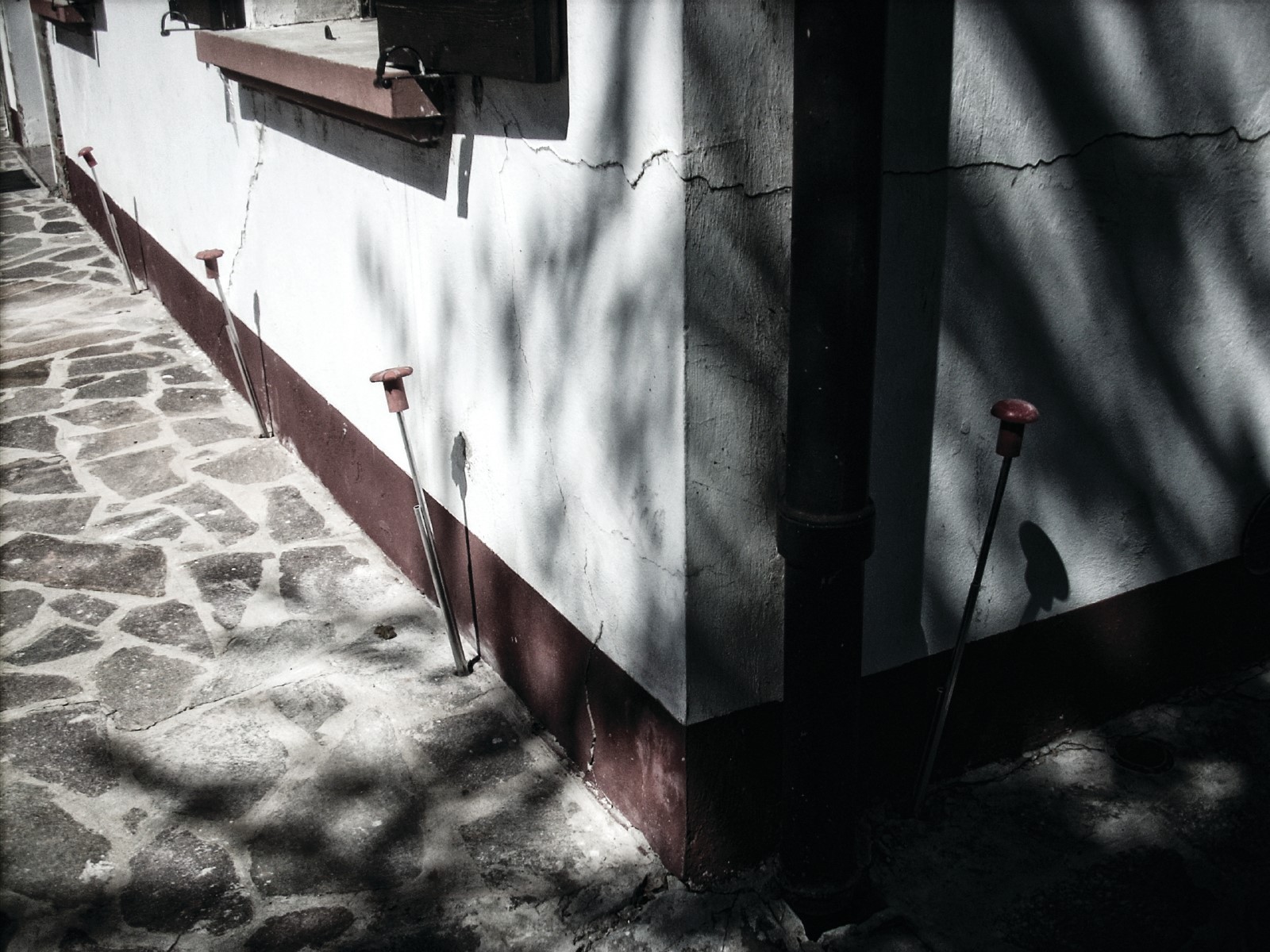 - Crepe nei muri verticali, generalmente causate dallo scorrimento fra due strutture, una delle quali ha subito un cedimento delle fondazioni che si ripercuote sue quella adiacente provocando la comparsa di fessure nella muratura;