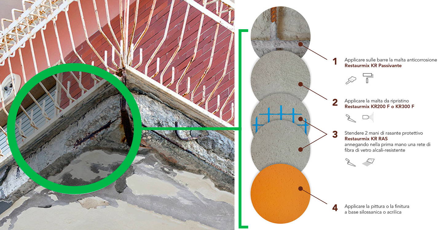 Ciclo di applicazione con prodotti Restaurmix per il ripristino di un terrazzo degradato