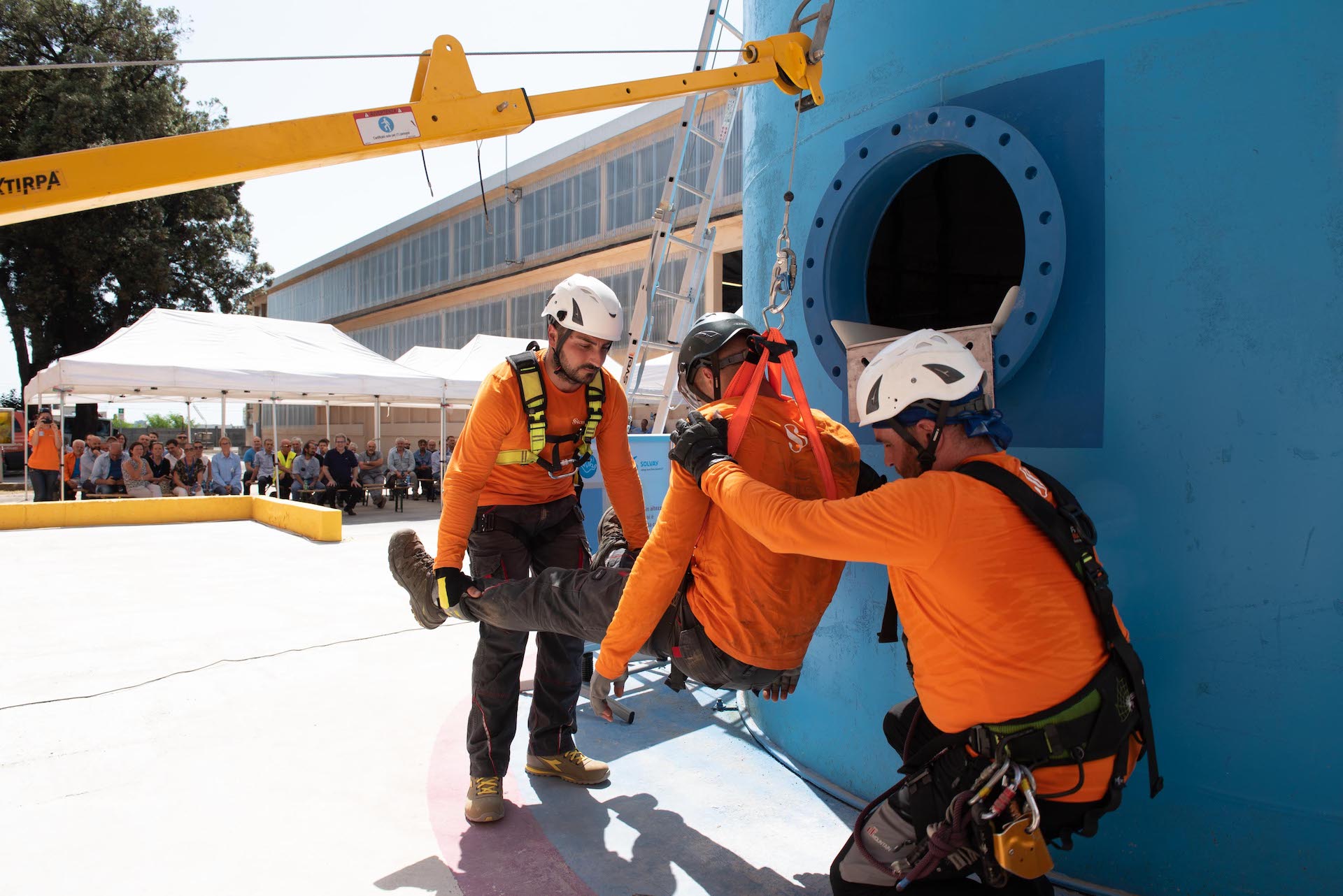 Durante la giornata, la responsabile Salute e Sicurezza dello stabilimento, Mya Zani, ha parlato non solo delle normative e delle regole quotidiane da applicare sul lavoro negli ambienti confinati, ma ha anche presentato la nuova palestra addestrativa.