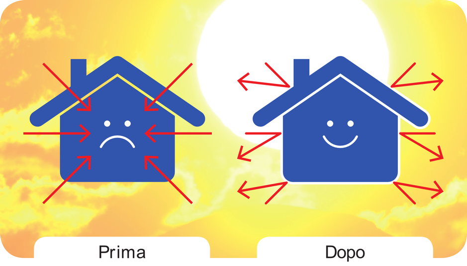 Con l’impiego della linea Casa Benessere, in estate si genera una riflessione della radiazione solare verso l’esterno, mentre in inverno le radiazioni termiche emesse da corpi riscaldanti in parte vengono riflesse dal rivestimento, in parte assorbite determinando un innalzamento della temperatura superficiale a vista.