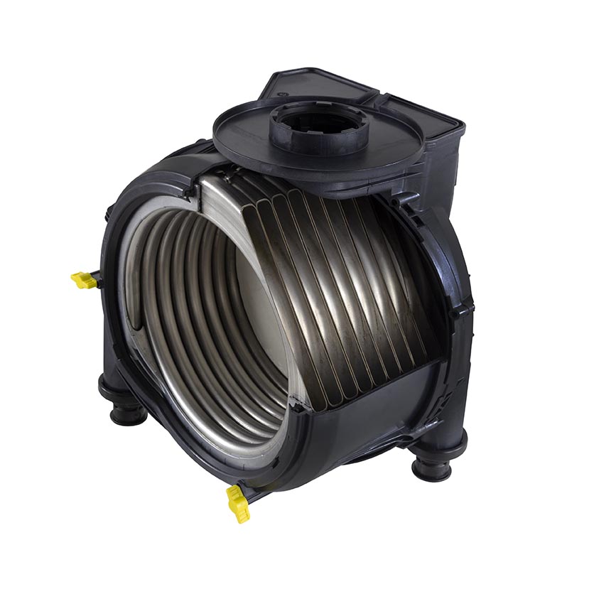 Con le spire in acciaio Inox (Ø 28 mm) autopulenti ad ampi passaggi, il nuovo scambiatore garantisce un maggior rendimento termico, una sensibile riduzione delle perdite di carico e un minor rischio d’intasamento grazie alla diminuzione di depositi. La chiusura a Quarter Block facilita gli interventi di manutenzione, mentre la totale assenza di saldature lo rende ancora più affidabile.