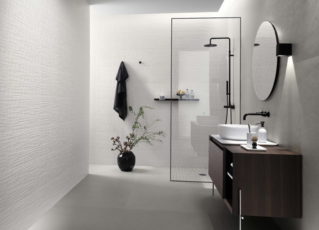 Fap ceramiche propone anche le texture Code – dal ritmo geometrico e lineare – e Peak, un motivo contemporaneo a righe diagonali che scolpisce le pareti. Una proposta dal design sofisticato che sfoggia la sua grinta proverbiale nell’arredare gli ambienti con personalità