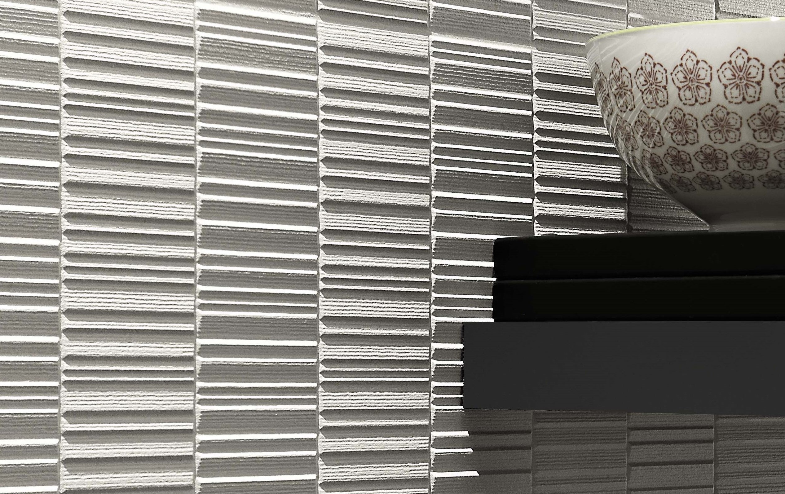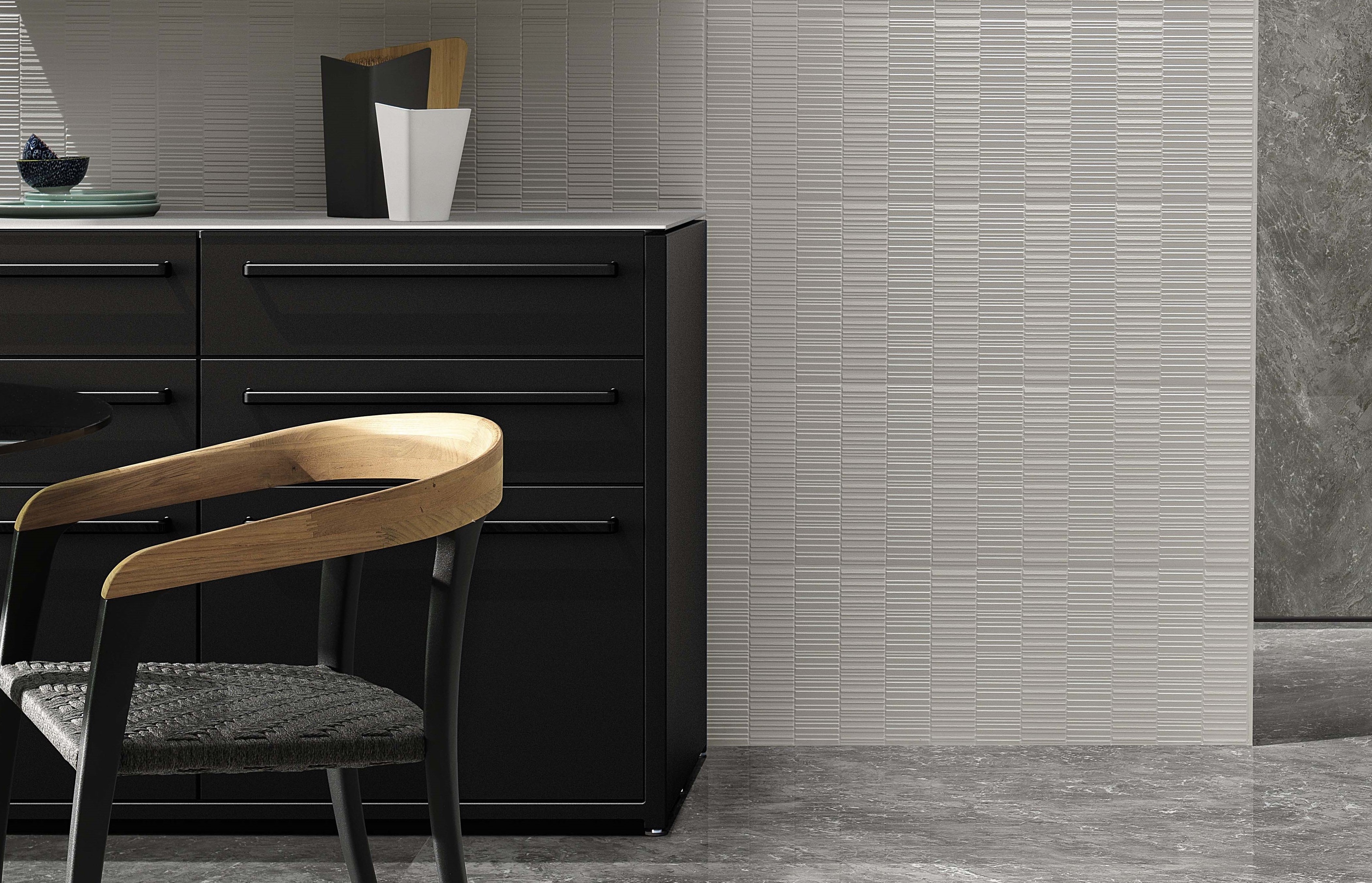Il dinamismo materico di Lumina si crea grazie al fondamentale ruolo della luce, naturale o artificiale, che fa emergere la tridimensionalità della collezione e trasforma le superfici verticali con vibranti effetti scultorei.