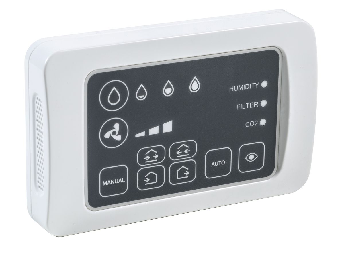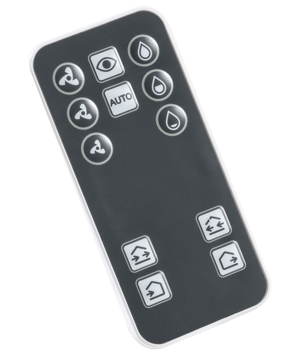 Controllo remoto. Rek60 è disponibile nella versione automatizzata con telecomando per il controllo remoto con funzioni modalità automatica, sorveglianza, immissione aria, estrazione aria, modalità flusso d’aria (quando sono installate due o più macchine), igrostato con tre livelli già impostati, velocità con tre livelli preimpostati. In dotazione vi sono anche la funzione notte e un segnalatore visivo per le varie funzioni e la segnalazione della pulizia del filtro. E’ inoltre possibile collegare fino a 16 unità in cascata.