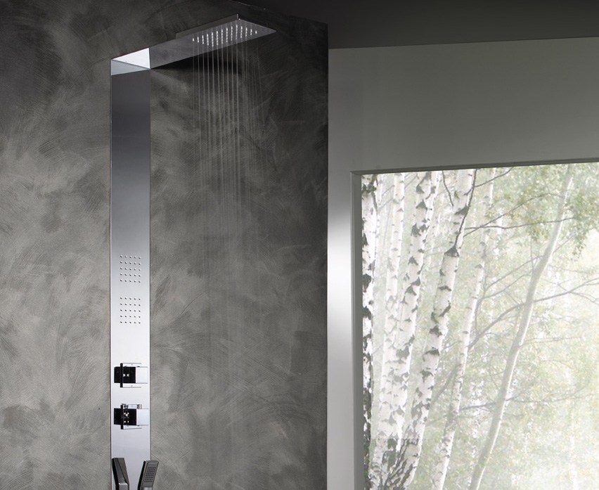 A completare la gamma Himeros di Damast anche altri elementi come: miscelatore termostatico, deviatore, doccia monogetto Telma in abs cromato con funzione anticalcare e flessibile antitorsione Satilux da 150 cm.