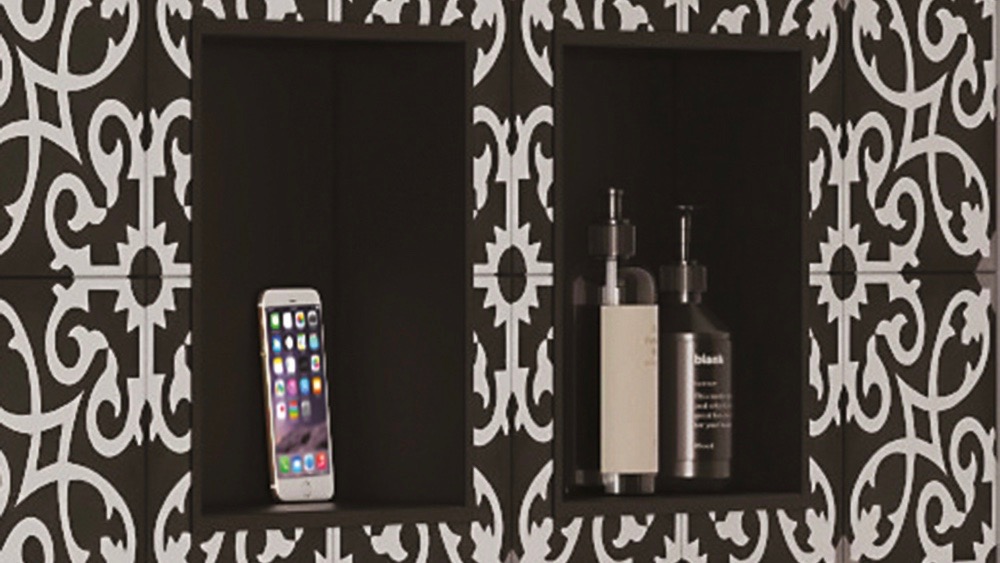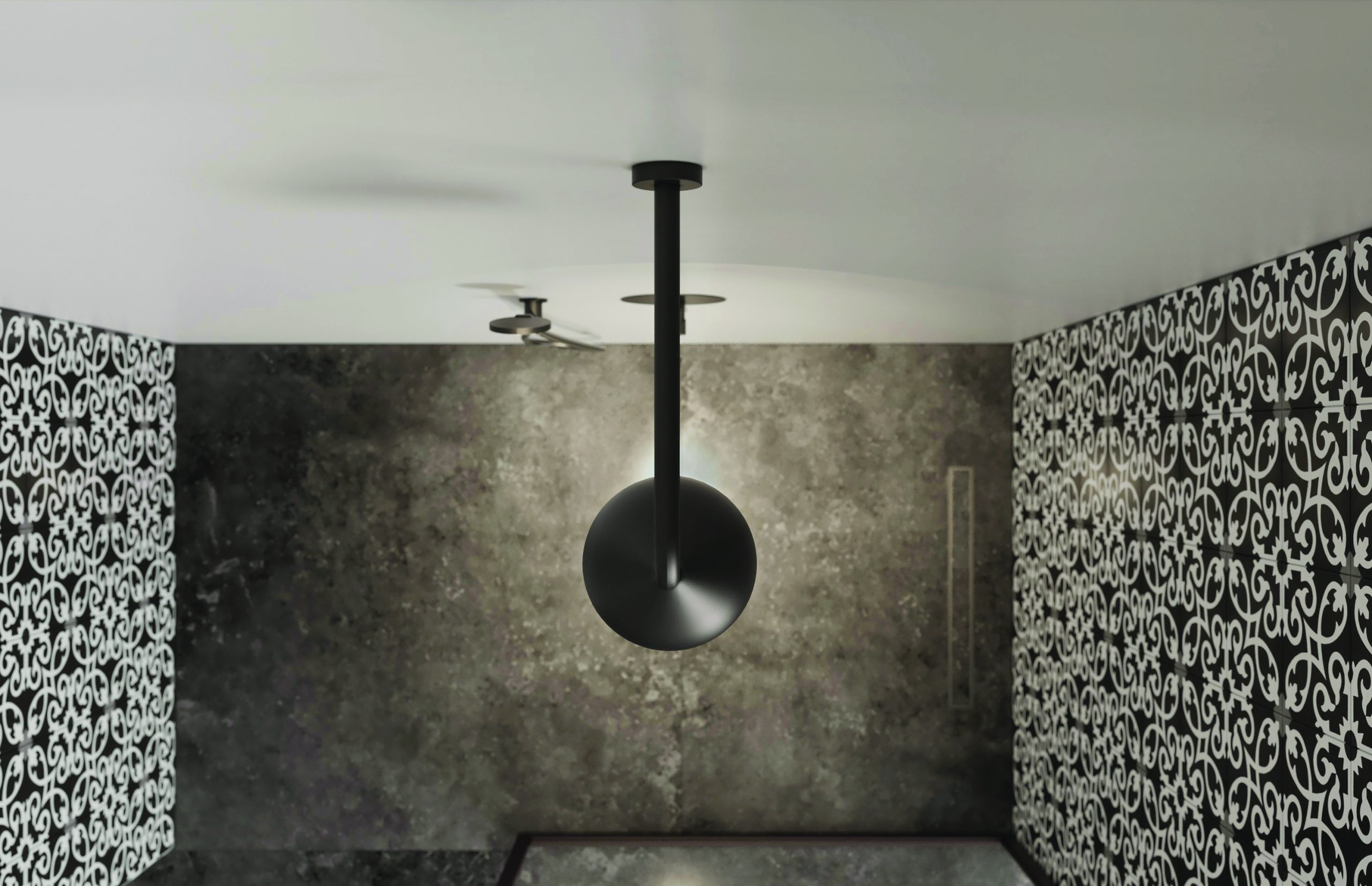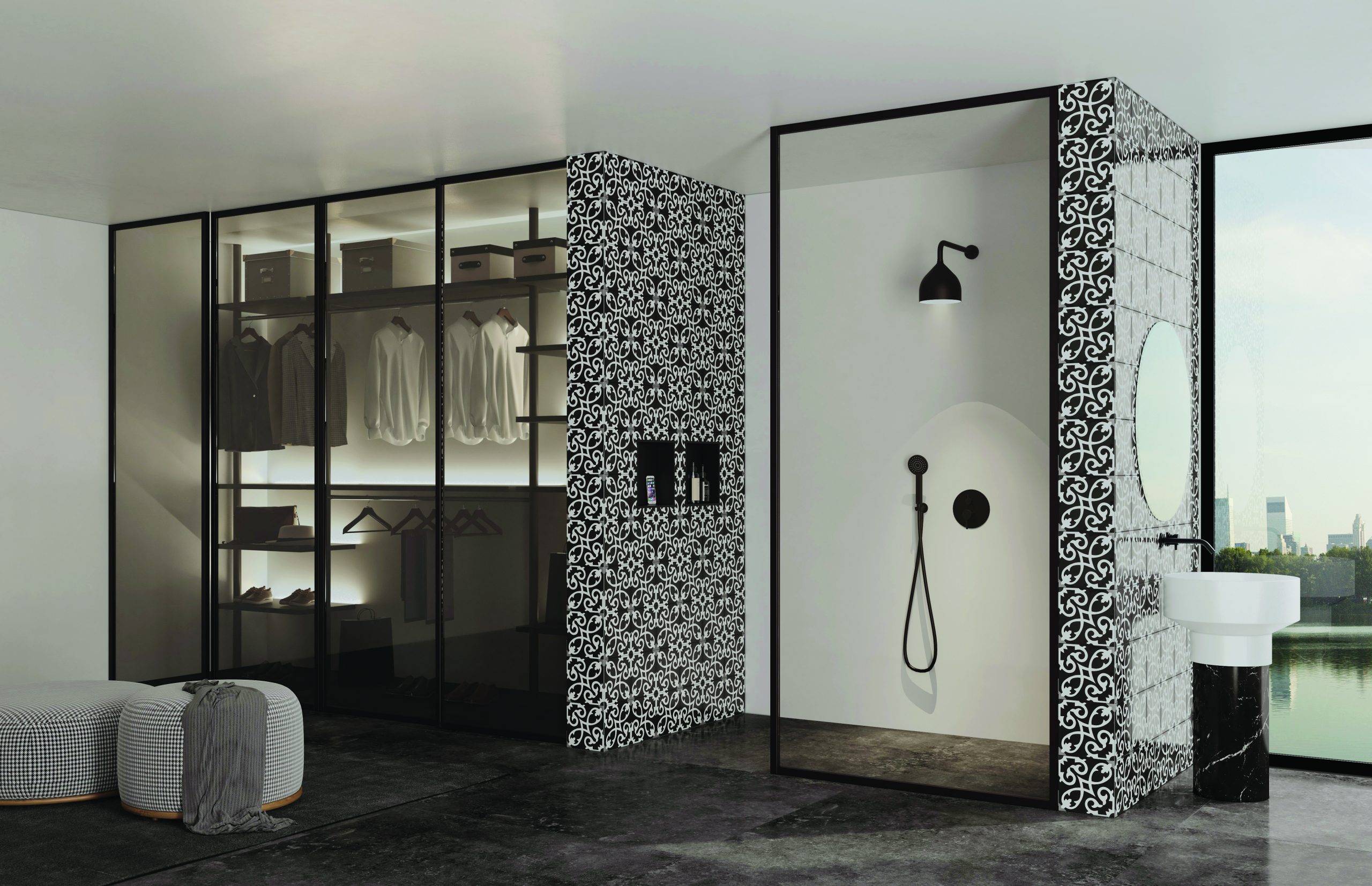 Intramontabile black&white con il soffione cromoterapico Altea per l’ambientazione Ambitious and Stylish