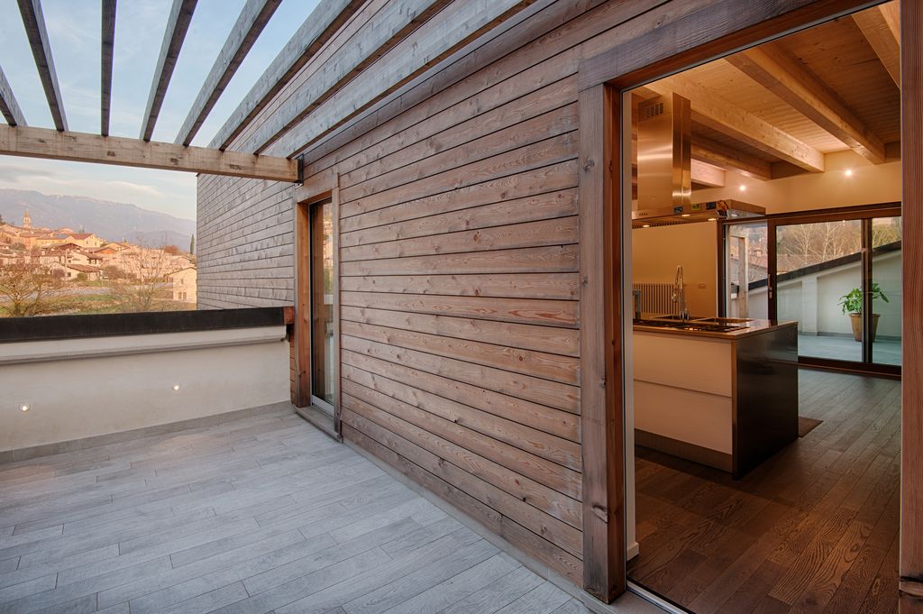 A Revine Lago (Treviso), dal recupero dell’ultimo piano di un hotel è stata ricavata un’originale abitazione privata caratterizzata da un modulo in legno ecostenibile in linea con le direttive ambientali sul consumo di suolo zero.