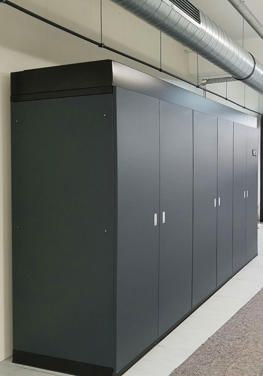 Per rispettare gli ingombri, migliorando il più possibile la capacità di raffreddamento i condizionatori di precisione, sono qui stati selezionati nella versione compatta (K), caratterizzata da una elevata densità frigorifera. Per migliorare ulteriormente la capacità di raffreddamento, le stesse unità sono state selezionate in versione Plus, cioè con il modulo ventilatori separato.