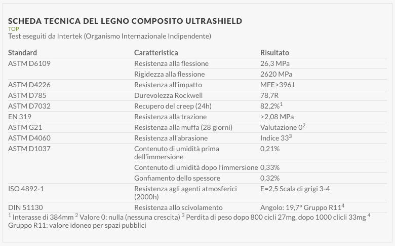 Un prodotto che non teme l’usura del tempo, con una garanzia di almeno 25 anni, e che permette di portare all’aperto tutto il fascino e il calore del parquet domestico, senza preoccupazioni.