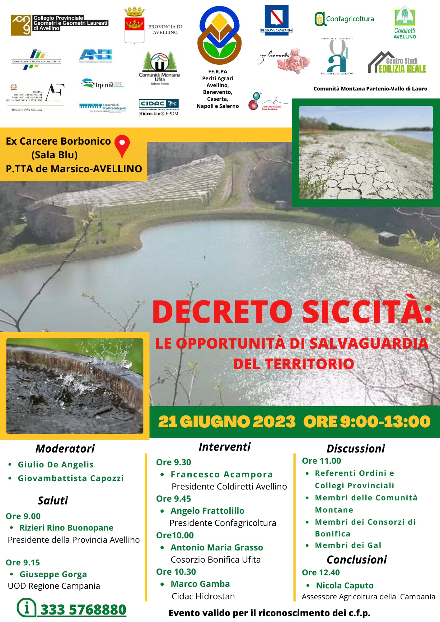 Patrocinato dalla Regione Campania e dalla Provincia di Avellino, l’incontro ha l’obiettivo di spiegare, agli operatori della filiera edile e della filiera agricola, i contenuti e i campi di applicazione del Decreto Siccità, approvato in via definitiva il 9 giugno 2023, recante “Disposizioni urgenti per il contrasto della scarsità idrica e per il potenziamento e l’adeguamento delle infrastrutture idriche” e in attesa della firma del Capo dello Stato alla quale seguirà la pubblicazione in Gazzetta Ufficiale.