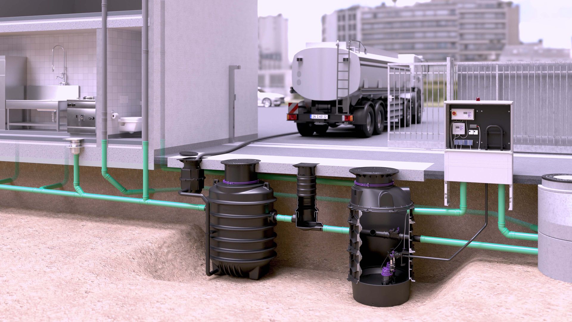 Spesso gli edifici in cui è necessario installare un degrassatore non dispongono di spazio sufficiente nei vani tecnici. Per questo Kessel ha pensato ad una alternativa salva-spazio: il modello EasyClean Ground Oval per l’installazione interrata.