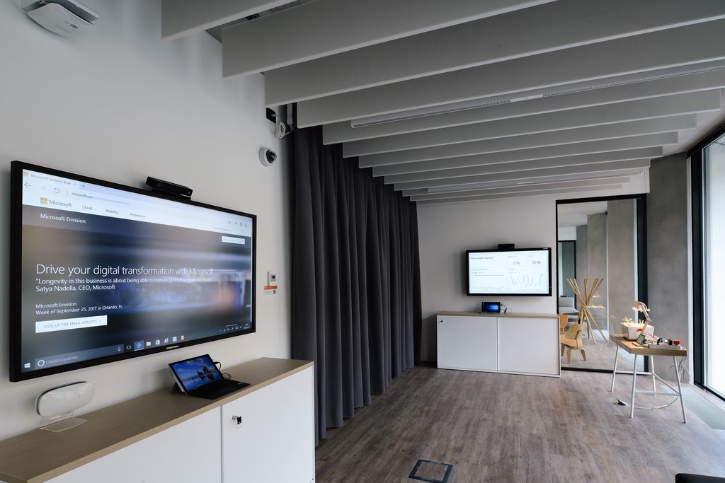 Nell’iconico edificio di Herzog & de Meuron gli interni sono caratterizzati da spazi made in Italy pensati in linea con i valori di Microsoft.