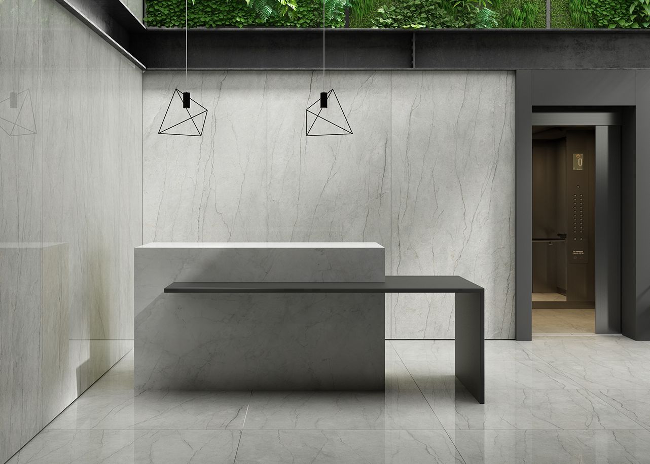 L’ultima tendenza del mercato dell’edilizia commerciale e residenziale di alto livello è quella delle grandi lastre in gres porcellanato. Del Conca va oltre la dimensione standard e lancia un formato ancora più grande, il 120×260 cm. Il progettista può creare continuità negli ambienti, ottenendo superfici ininterrotte dal pavimento al soffitto per risultati di grande impatto emozionale. Le grandi lastre Del Conca nel formato oversize 120×260 cm superano i limiti della ceramica classica e aprono nuove possibilità d’uso anche per piani cucina, mobili da bagno, tavoli e altro ancora, ottenendo così un total look che coinvolge pavimento, rivestimento e arredo.