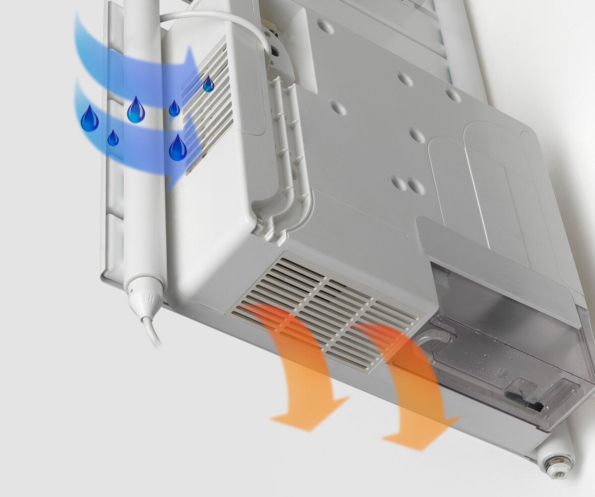 L’innovazione di Drop è data dalla presenza di un deumidificatore incorporato sul retro, quindi invisibile, estremamente silenzioso che funziona a elettricità.
