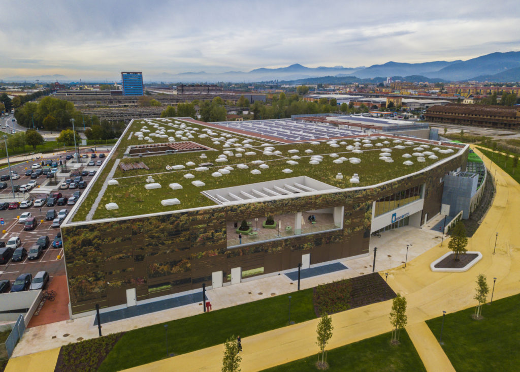 L’esperienza di Derbigum è stata importante per questo progetto: ha infatti eseguito l’impermeabilizzazione di 22.000 mq delle coperture, utilizzando per il sito 3 diverse tipologie di membrana: Derbigum Gc per il parcheggio multipiano interrato di circa 11.500 mq; Derbibrite Nt, applicata a freddo con Derbibond Uni per l’area con impianto fotovoltaico di oltre 4.500 mq. La scelta non è stata casuale ed è stata importante per il fattore sicurezza: infatti la posa con un adesivo bituminoso a freddo delle membrane impermeabili riduce l’utilizzo di fiamme libere del 90% e, di conseguenza, il rischio di incendio durante il cantiere. Infine Derbigum Sp Ar, la membrana con caratteristiche anti-radice, ideale per l’installazione del giardino pensile.