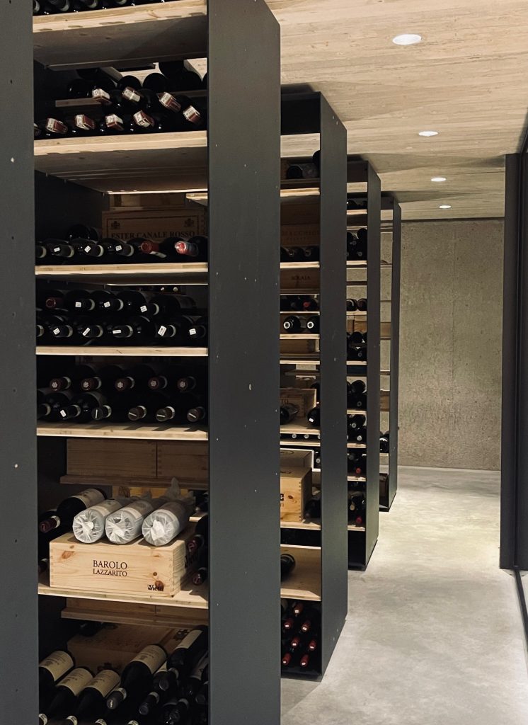 Il primo intervento ha riguardato la cantina ipogea, dove sono conservate oltre 1.800 etichette selezionate dal sommelier Andrea Bravaccini.