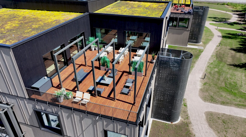 La copertura Stommen Group in Svezia integra tetto verde e fotovoltaico con membrane Derbigum Sp Ar e Sp Fr: antiradice, resistenza al fuoco Broof e vita utile certificata di 50 anni.