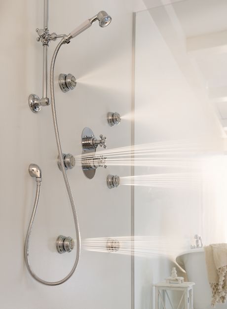 Lo stile retrò incontra la tecnologia nella doccia Grazia di Teknobili, una collezione dall’aspetto classico dotato dei più recenti dispositivi per il wellness: da un lato il design armonico e classico di soffioni, doccette e manopole; dall’altro i modernissimi body jet che la rendono una soluzione degna di una spa. I getti laterali, inseriti direttamente nella parete, permettono di godere di un vero e proprio massaggio realizzato dall’acqua.