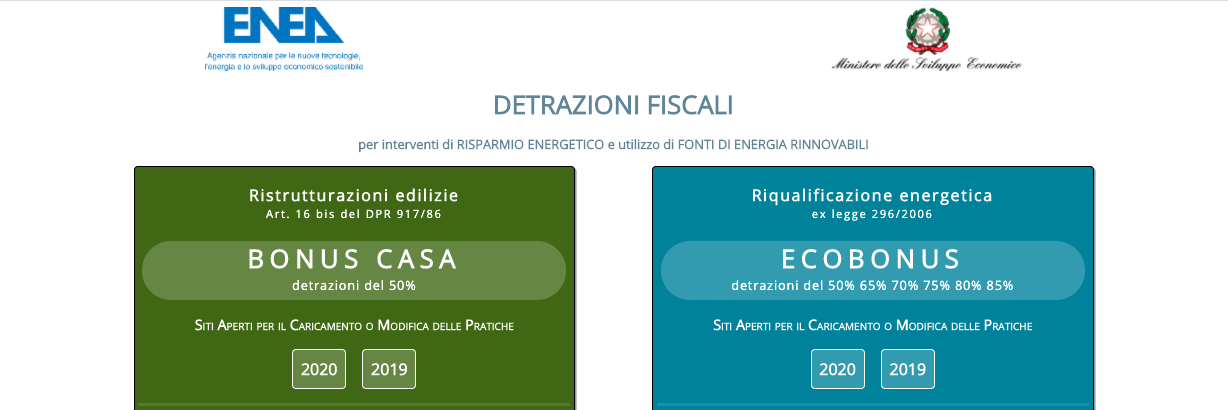 È operativo dal 25 marzo 2020 il sito detrazionifiscali.enea.it per trasmettere all’Enea i dati relativi agli interventi di efficienza energetica che possono beneficiare dei cosiddetti “ecobonus” e/o “bonus casa” con fine lavori nel 2020.