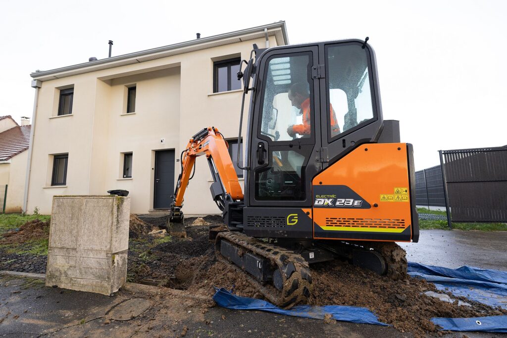 Il miniescavatore elettrico DX23E-7 supera le performance della controparte diesel DX19-7 su cui è basato, registrando +5% di capacità di sollevamento, prestazioni migliorate in lavoro e traslazione, maggiore stabilità operativa e +35 mm di raggio di sterzata posteriore per l’alloggiamento della batteria.