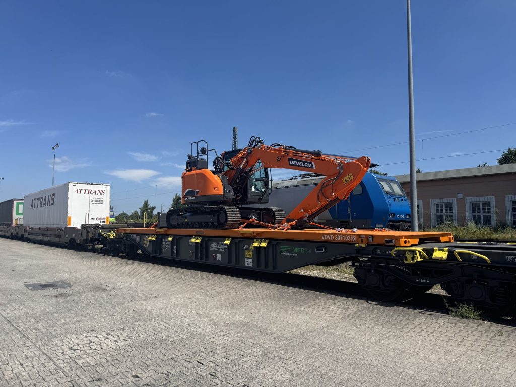Grazie a partenze giornaliere dei treni, i tempi di trasporto restano brevi e affidabili. Il primo trasporto di successo dell’escavatore Develon DX140LCR-7 è stato realizzato in stretta collaborazione con Cargobeamer, garantendo una programmazione regolare e transizioni intermodali fluide.