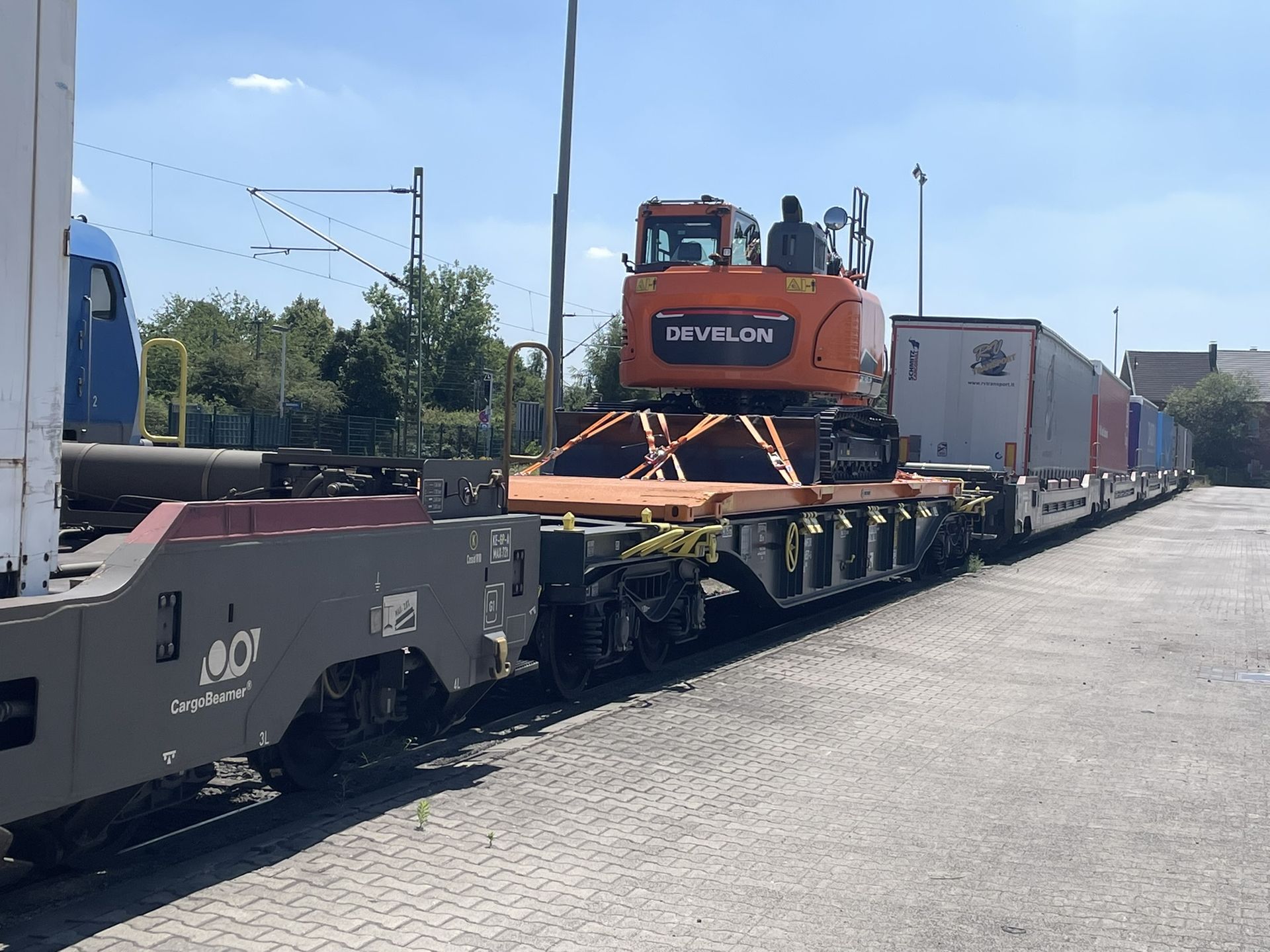 Grazie a partenze giornaliere dei treni, i tempi di trasporto restano brevi e affidabili. Il primo trasporto di successo dell’escavatore Develon DX140LCR-7 è stato realizzato in stretta collaborazione con Cargobeamer, garantendo una programmazione regolare e transizioni intermodali fluide.