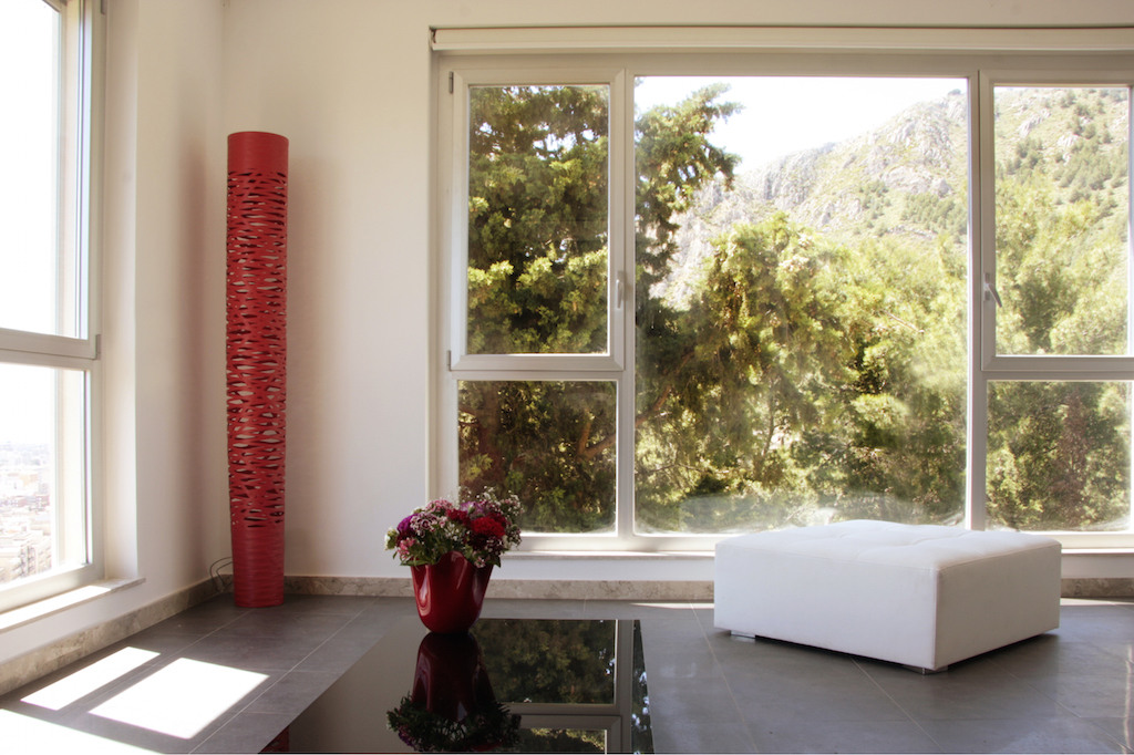 Questa parete e le due sedute a essa affiancate indirizzano l’attenzione sulle due direzioni più importanti: da un lato la veduta delle saline e delle Isole Egadi e dall’altro il castello di Venere sulla vetta del monte.