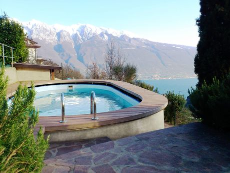 La piscina panoramica di un’abitazione privata di recente costruzione affacciata sulle sponde bresciane del Lago di Garda, è stata rimessa a nuovo grazie al rivestimento del bordo con doghe Naturinform Kernige prodotte da Harobau di Cortaccia (Bz).