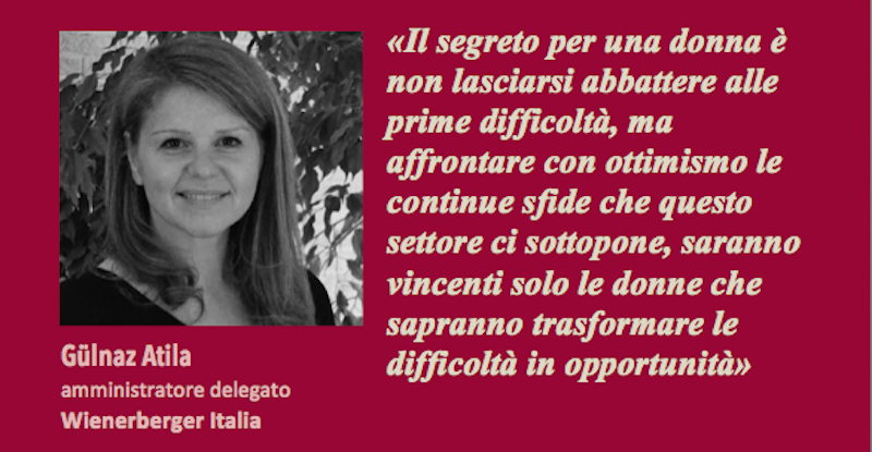 «Essere sempre aperte al futuro e preparate – afferma decisa Gina Caralli – e coltivare i rapporti con i professionisti. Il lato umano è fondamentale, così come la formazione e l’aggiornamento continuo». Per Paola Gambacorta «la conoscenza del settore in cui si opera, le competenze approfondite e la forte passione sono le fondamenta per affrontare il mercato dell’edilizia, per costruire progetti che diventino realtà grazie alla consapevolezza del lavoro di squadra». Ricettario e ingredienti condivisi anche da Gülnaz Atila: «A un mercato con un grado di complessità sempre più elevato, si deve rispondere con la massima trasparenza e impegno nel fornire elevati standard qualitativi e certificazioni di semplice lettura. Puntare sul servizio per offrire ai clienti la consulenza dei nostri esperti sia in fase di progettazione sia in cantiere; comunicare sempre le nostre attività e aggiornamenti; lavorare sul marketing e sui nuovi canali digitali per raggiungere assieme gli obiettivi prefissati». In un mercato dell’edilizia che ancora soffre e dove gli incentivi fiscali non bastano più «si verificheranno dei cambiamenti che andranno a modificare inesorabilmente il modo di fare azienda, con contaminazioni necessarie rivolte al cliente finale, dovremo quindi dotarci di strumenti adeguati» prevede Paola Gambacorta di Veredil, così come per Brigitte Schönthaler «il futuro non sarà né rosa né nero, dovremo però abituarci a degli standard con margini diversi».
