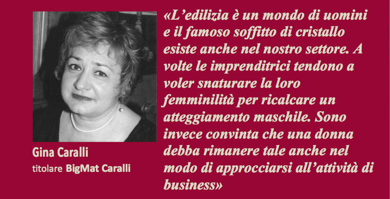 Un’impresa su tre tra quelle under 35 è a trazione femminile (il 28,11% del totale delle imprese giovani) e molte si sono avventurate in terreni solitamente predominati da presenze maschili come l’edilizia. Per la Atila il segreto è «non lasciarsi abbattere alle prime difficoltà, ma affrontare con ottimismo le continue sfide che questo settore ci sottopone, saranno vincenti solo le donne che sapranno trasformare le difficoltà in opportunità». Alle future imprenditrici anche Gina Caralli di BigMat consiglia di essere sempre professionali e avere una propria visione del futuro: «Dinamismo e tenacia anche di fronte a certi atteggiamenti maschili, se ci sono preparazione e voglia costante di imparare con il tempo si riuscirà ad avere successo».