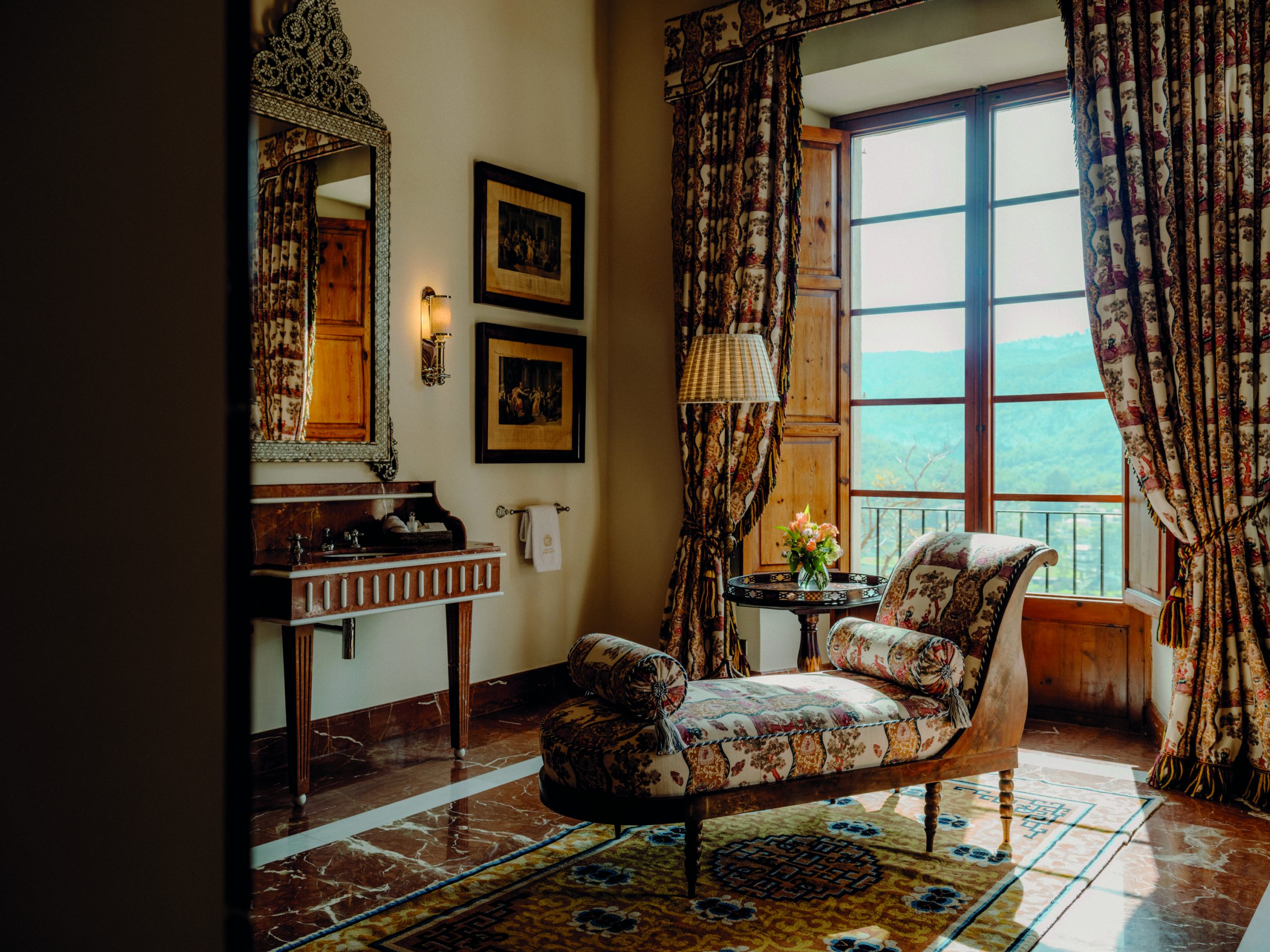 Il Grand Hotel Son Net si trova sopra il piccolo villaggio di montagna di Puigpunyent, circondato da foreste di pini e paesaggi aspri e rocciosi. La maestosa casa padronale è stata meticolosamente restaurata tra il 2020 e il 2023 dal famoso interior designer e decoratore Lorenzo Castillo.