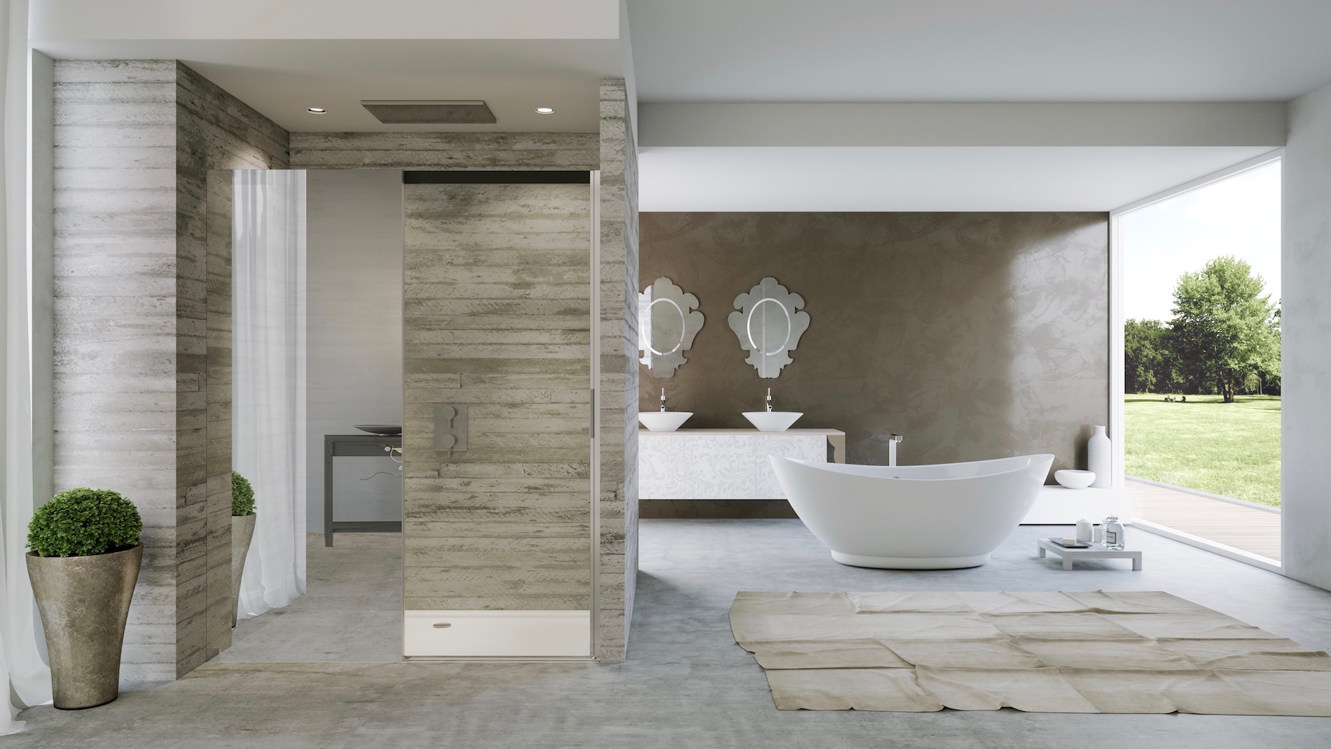 Grazie alle diverse tipologie di vetro e alla varietà di finiture disponibili per cerniere, maniglie e profili, la cabina doccia Duka è un elemento distintivo dello spazio bagno.