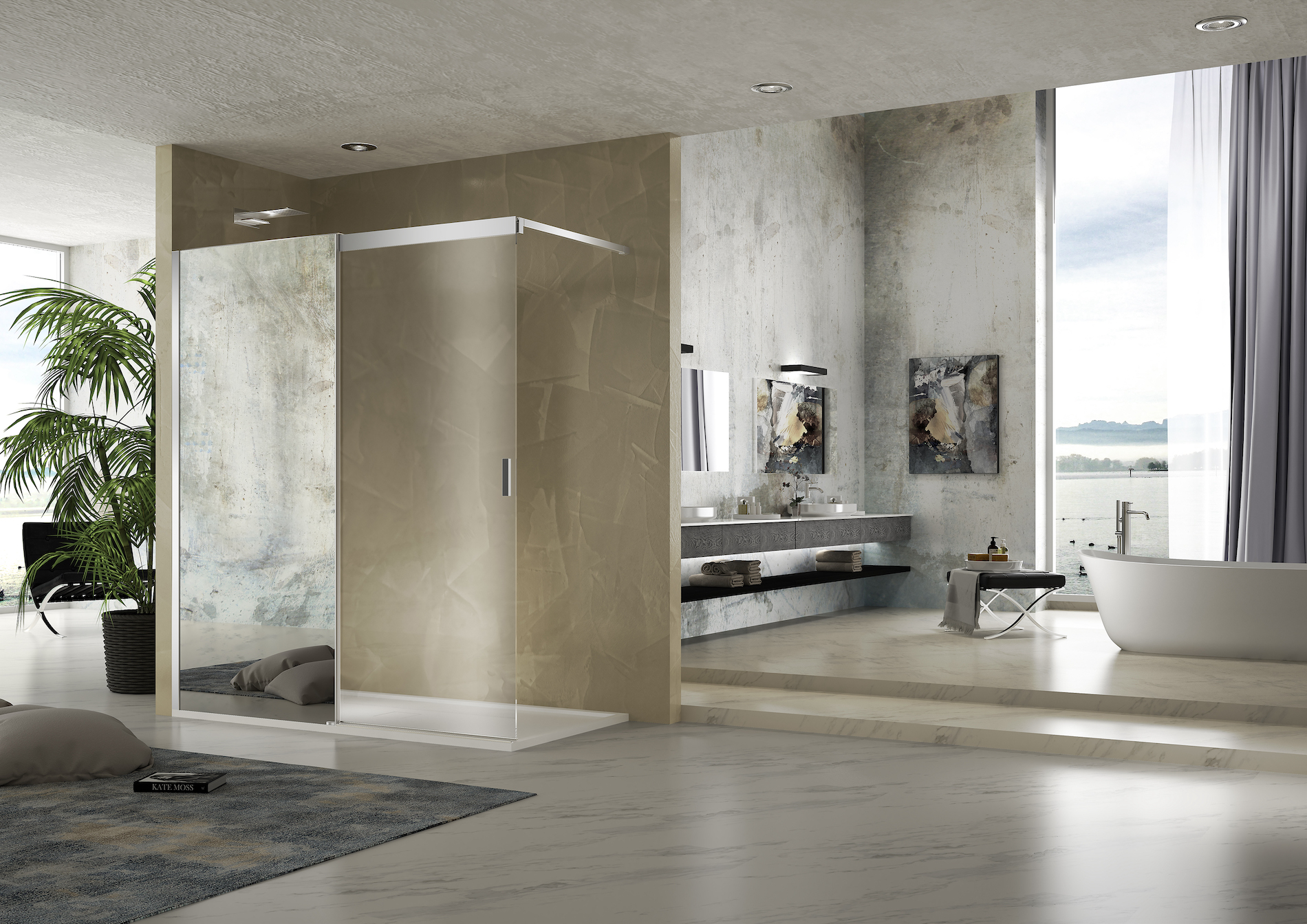 Lo scorrimento fluido della porta assicura entrata e uscita dalla doccia particolarmente semplici agevoli. La serie è caratterizzata dal sistema Acs (automatic close & stop) che permette, con un semplice gesto, di far scorrere la porta gradualmente fino alla completa apertura o chiusura del box.