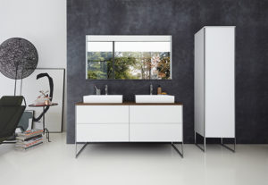 Riprende il raggio di curvatura dell’angolo del lavabo creando in questo modo armonia e contemporaneamente una evidente individualità. In abbinamento a colonne, specchi e armadietti a specchio della serie, il cui design è sempre caratterizzato dal profilo cromato, risulta una zona lavabo elegante.