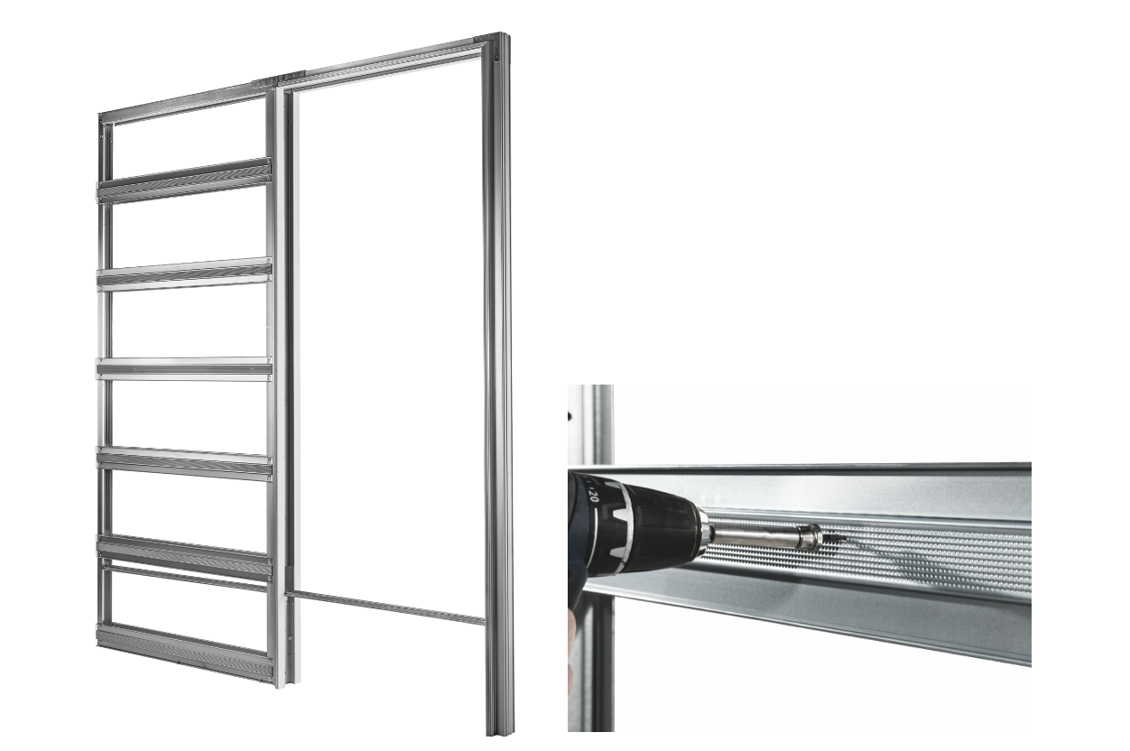 Eclisse ha sviluppato una versione specifica per i controtelai per porte a scomparsa per pareti in cartongesso che si presenta come una struttura aperta, coerente con le orditure metalliche normalmente usate per creare le pareti a secco e più facile da movimentare. In particolare, gli accorgimenti e i dettagli costruttivi Eclisse nascono per facilitare l’installazione e garantire una posa in opera a regola d’arte.