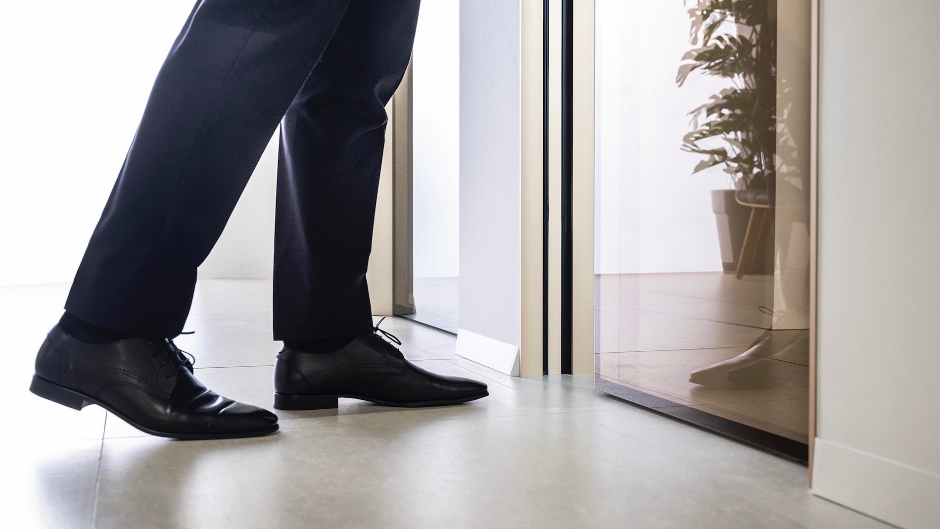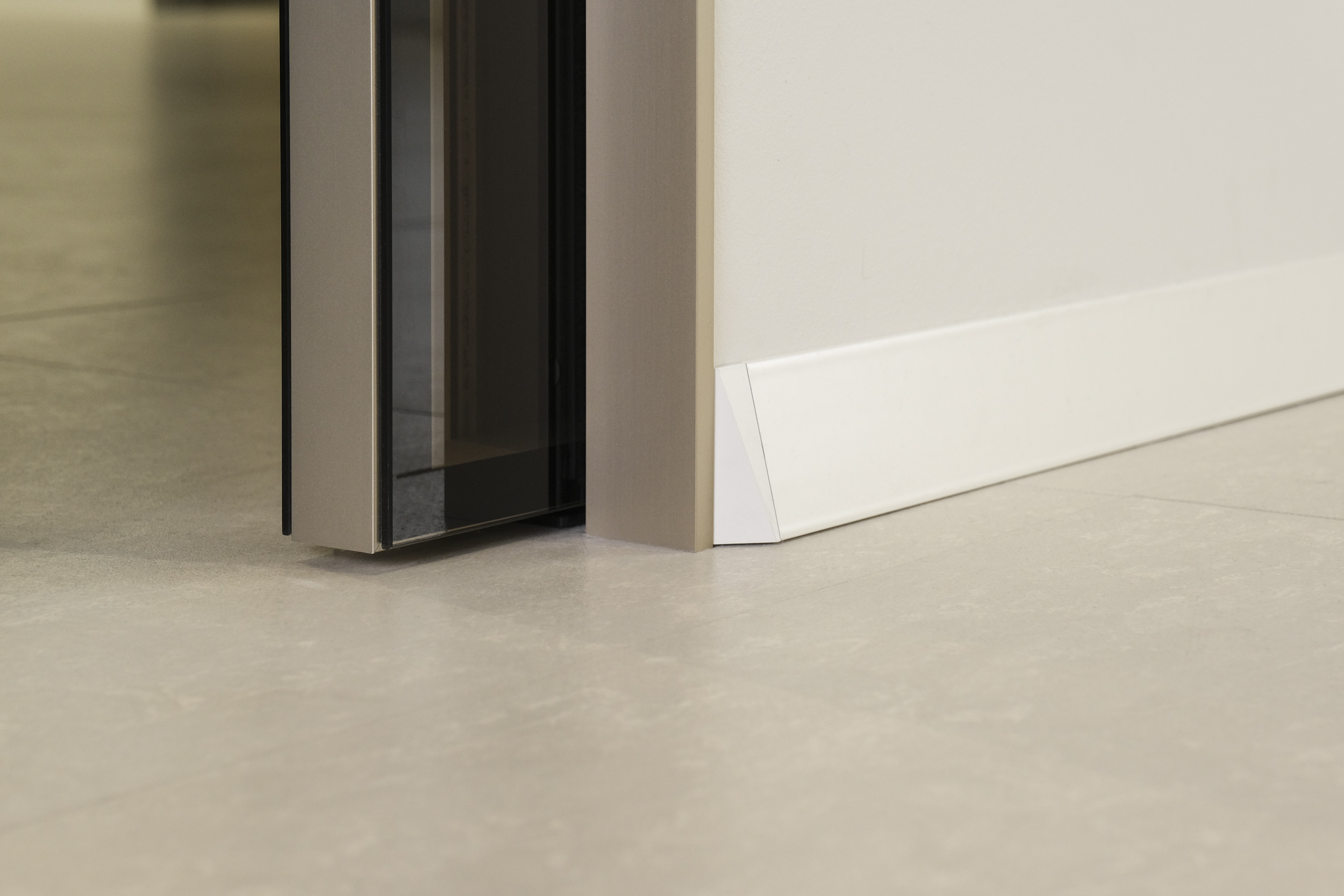 Il battiscopa Eclisse Delta può essere abbinato a qualsiasi tipologia di controtelaio. Accompagnato ad ECLISSE 40 Collection, il telaio per porta strombato a 40 gradi, ne imita l’inclinazione creando un unico elemento perfettamente coordinato.
