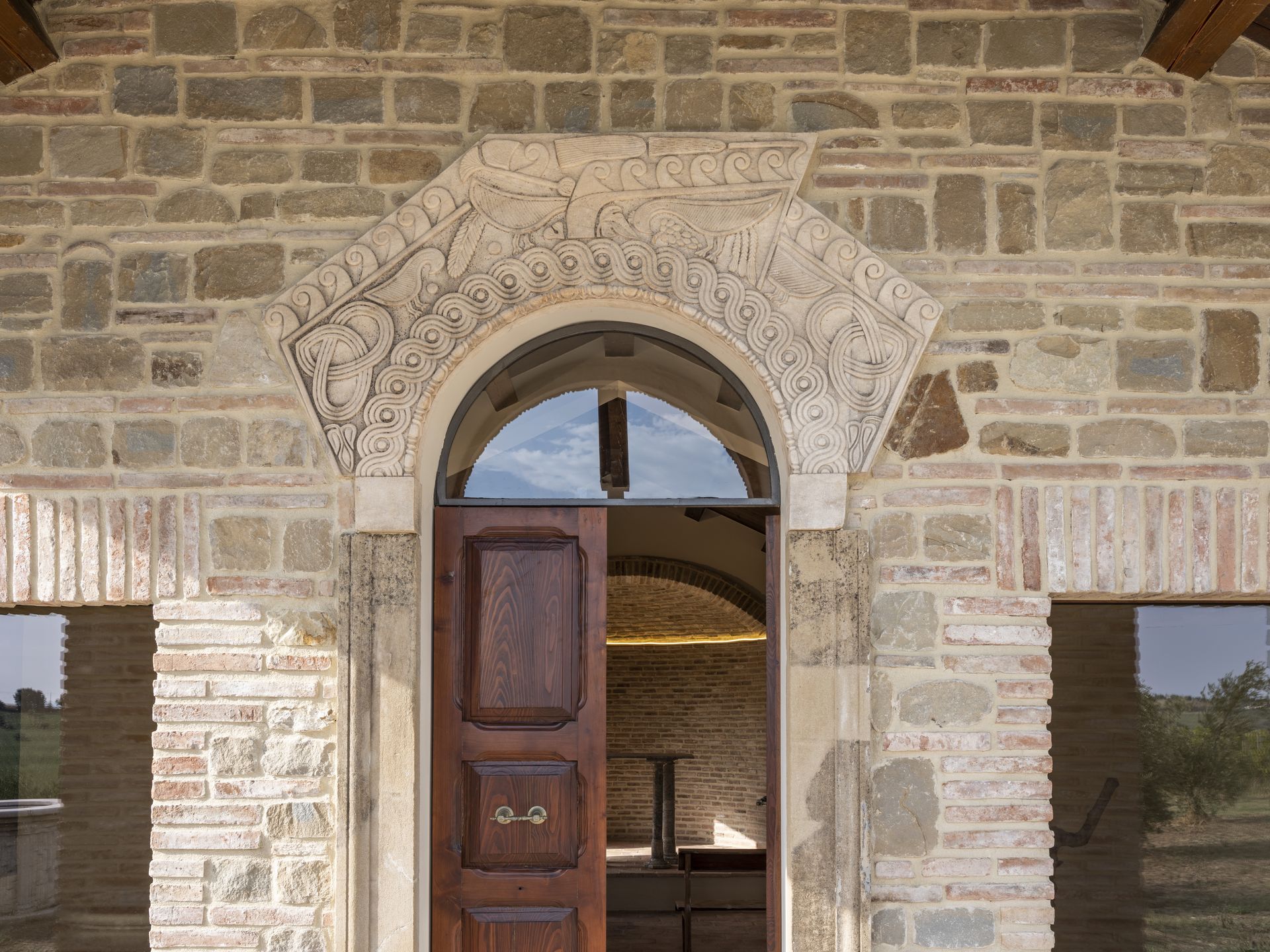 Ad esempio la facciata a vista è stata realizzata utilizzando esclusivamente i mattoni provenienti dalla demolizione della casa rurale ottocentesca e si abbina elegantemente al legno lamellare sbiancato utilizzato per le coperture ed i solai.