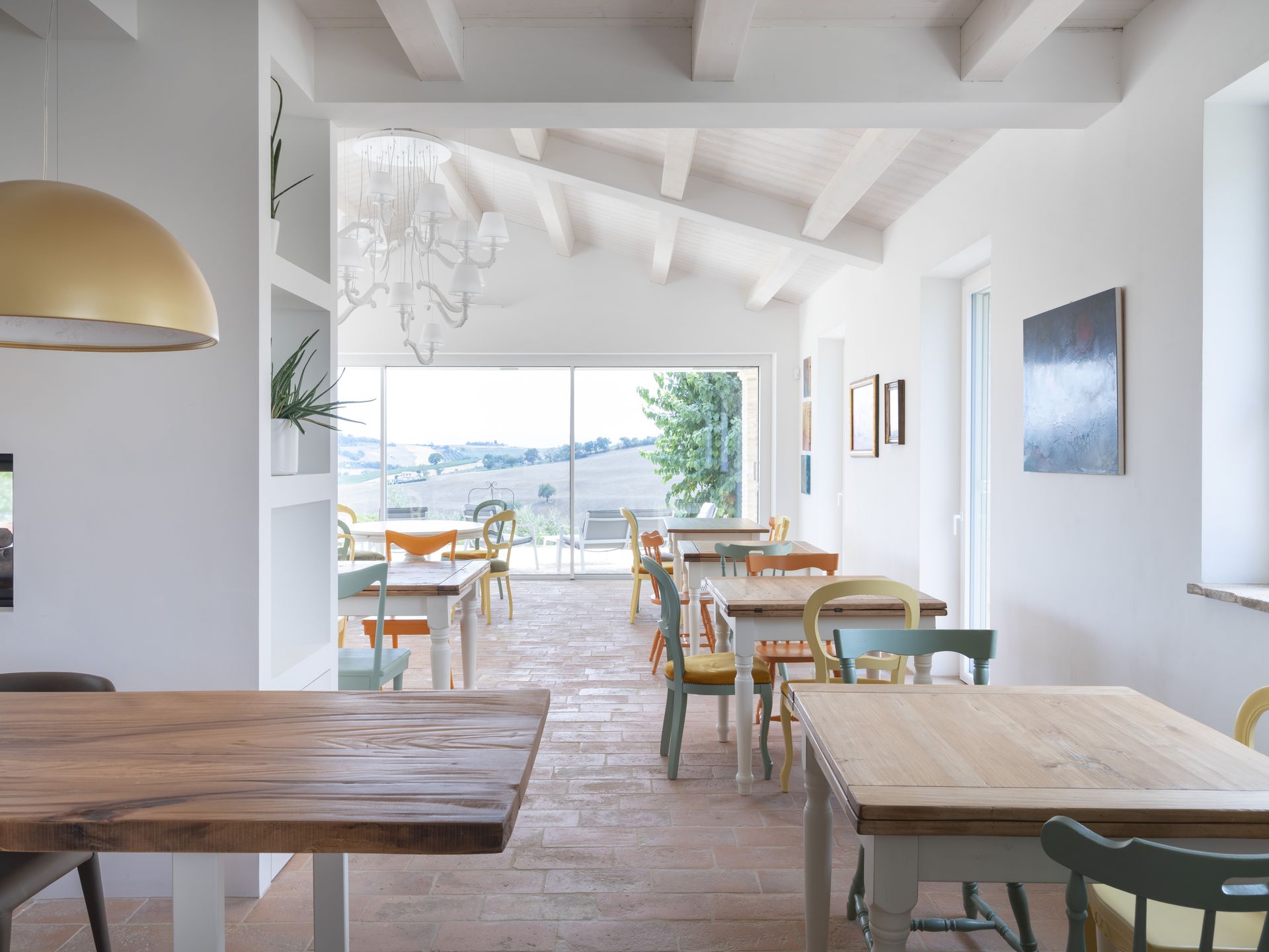 L’agriturismo è composto in tutto da 5 camere che sviluppano superfici dai 15 ai 24 mq e sono caratterizzate dai nomi di altrettante varietà di olivi della tradizione marchigiana: carboncella, coroncina, raggia, rosciola e mignola.