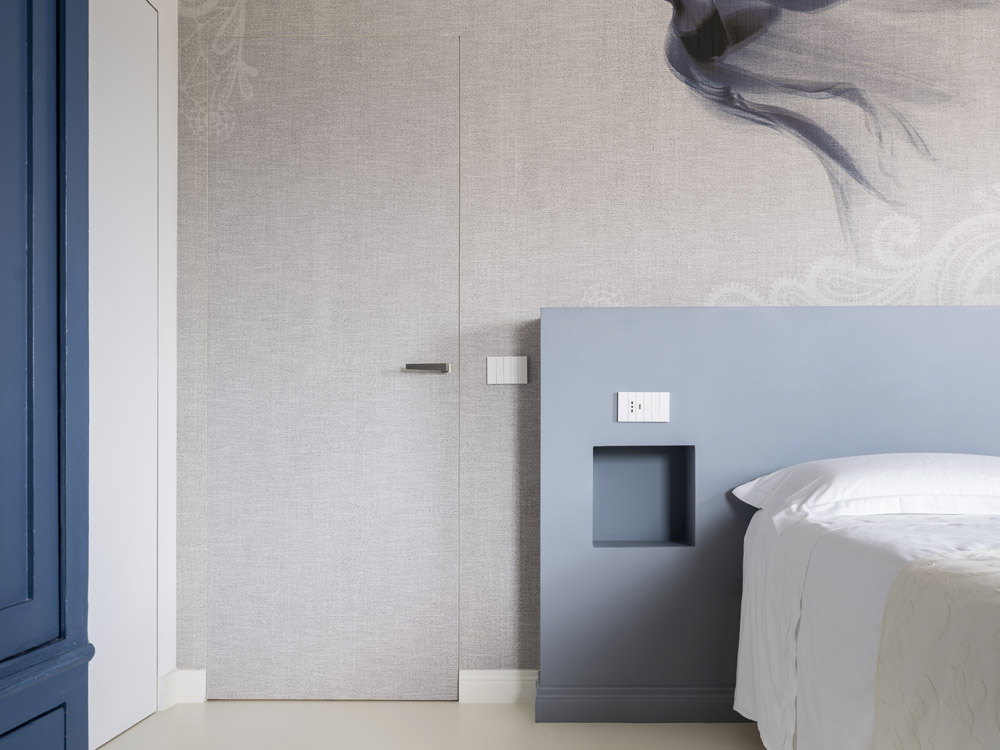 Nel corridoio piano primo l’accesso alle stanze è sottolineato dalla presenza di Eclisse 40 che crea un gioco di chiaroscuri dando movimento a questo spazio distributivo.