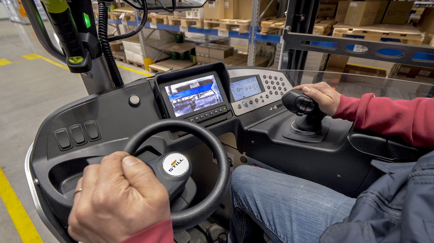 Per operare al meglio tra le alte scaffalature del magazzino, i carrelli retrattili sono equipaggiati coi più innovativi sistemi di assistenza all’operatore: videocamere sulle forche per un maggior controllo delle operazioni in altezza, preselettore dei piani Easy Target Plus, sistema di centraggio automatico delle forche, tetto in vetro e Curve Speed Control per adattare automaticamente la velocità in curva.